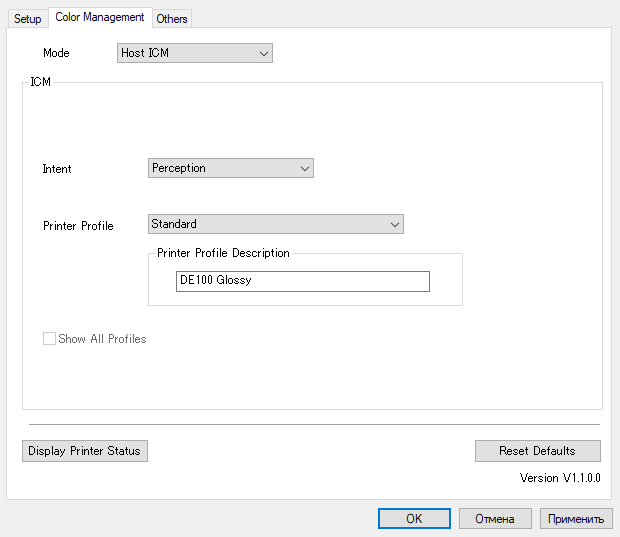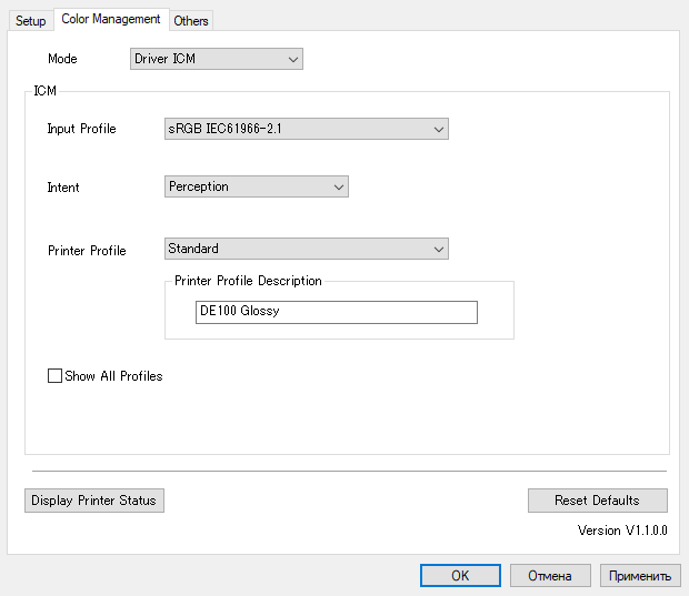 Вторая часть — установки в драйвере, пользовательский интерфейс которого не имеет русификации.