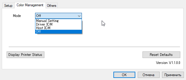 На закладке Color Management сначала надо выбрать режим (по умолчанию Off).