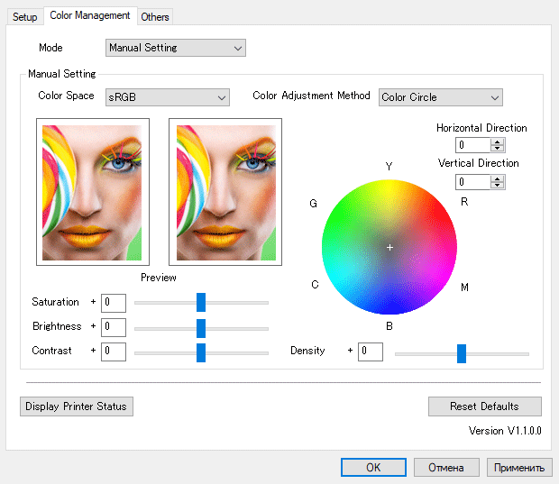 Некоторые подробности о настройке цветопередачи есть в инструкции. Правда, есть определенные сомнения: часто ли будет пользоваться этими возможностями оператор киоска или салона коммерческой фотопечати.