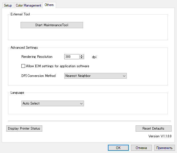 Закладка Others позволит вызвать Maintenance Tool (утилиту обслуживания), задать некоторые дополнительные настройки, включая разрешение при рендеринге (подразумевается, что пользователь владеет предметом: в инструкции пояснения по этим пунктам предельно короткие), а также выбрать язык — пока вариантов всего два: японский и английский.