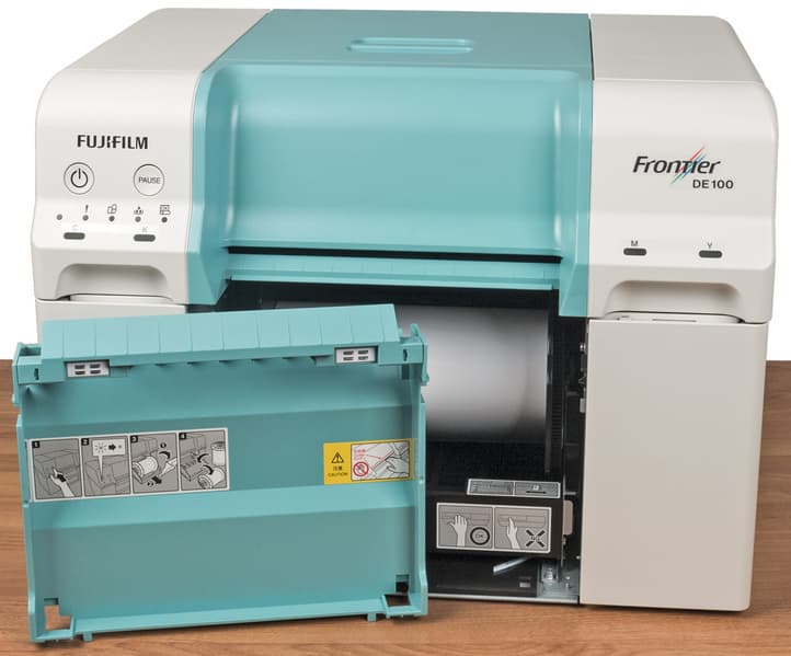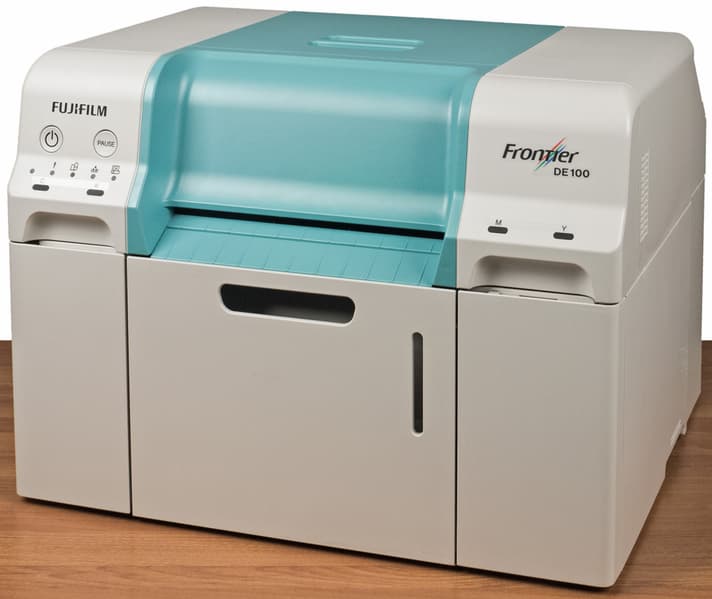 Fujifilm Frontier DE 100 — представитель класса минилабов, предназначенных для струйной фотопечати на рулонной бумаге. Основное его назначение — коммерческое: аппарат вполне годится на роль «средства производства» в фотосалонах и может быть использован везде, где требуется быстрая и качественная печать фотоснимков в большом количестве.