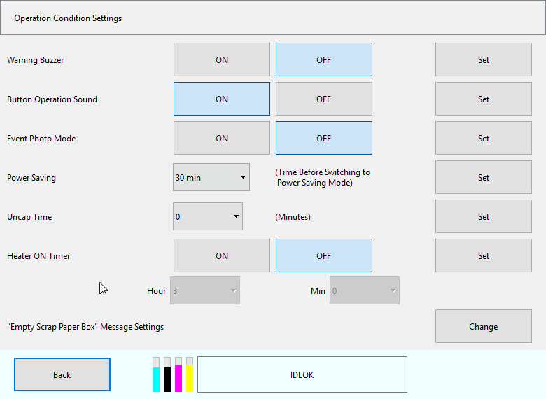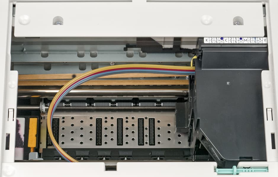 Как и у любого струйного принтера, имеется контейнер для отработанных чернил (абсорбер, «памперс») Maintenance Cartridge DE J, который заменяется пользователем. Его примерная наработка — 12 800 отпечатков 10×15 см.