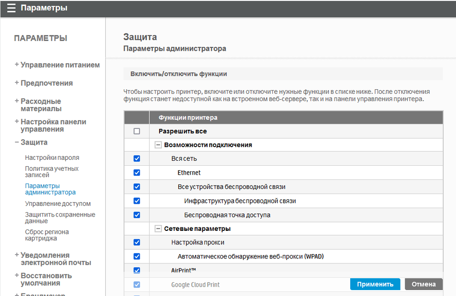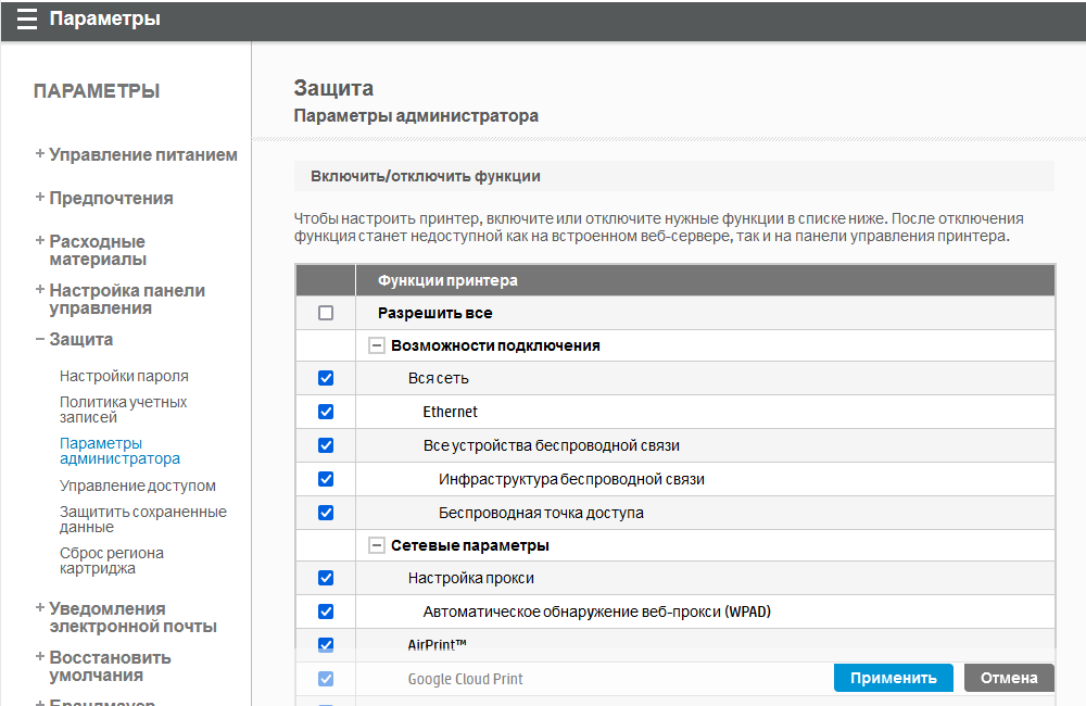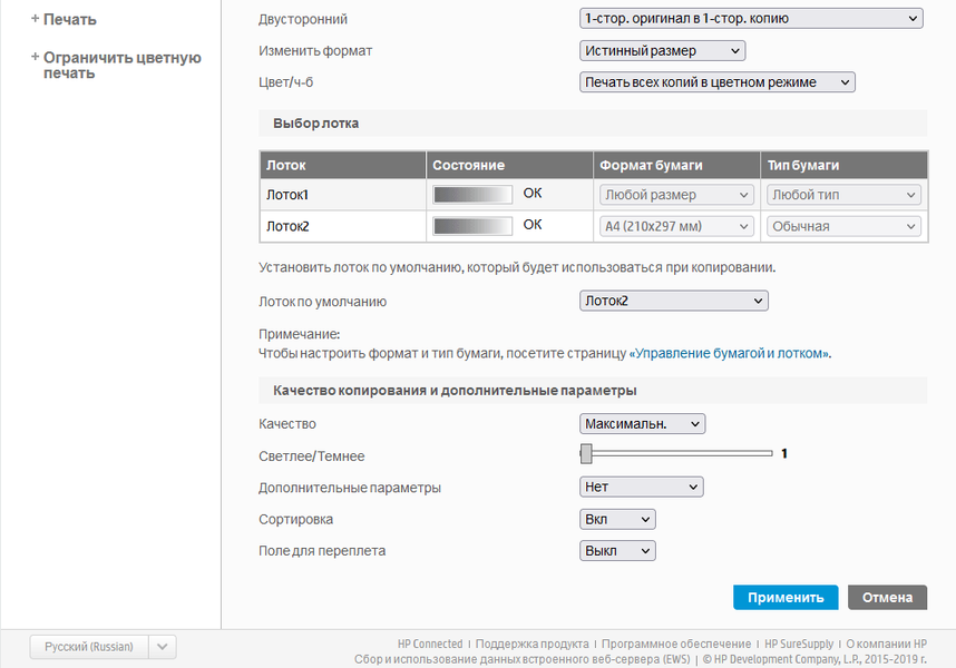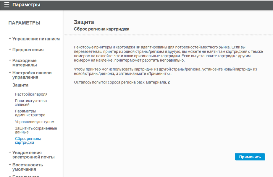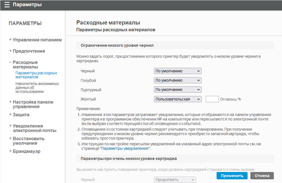 Вторая носит название «Политика по картриджам» и защищает уже карман производителя, позволяя устанавливать только оригинальные картриджи HP. Конечно, подается это под соусом заботы о потребителе: «Только подлинные картриджи HP обеспечивают наилучшее качество печати».