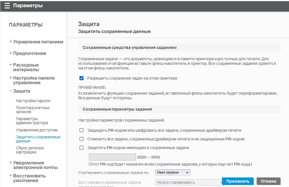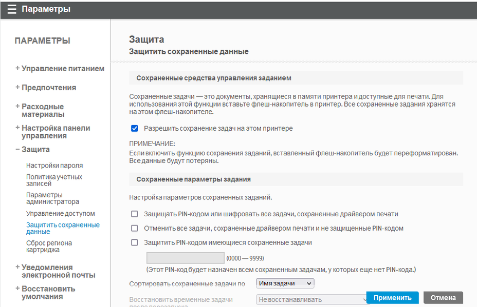 | Жесткий диск | нет (для хранения заданий можно использовать накопитель USB) |