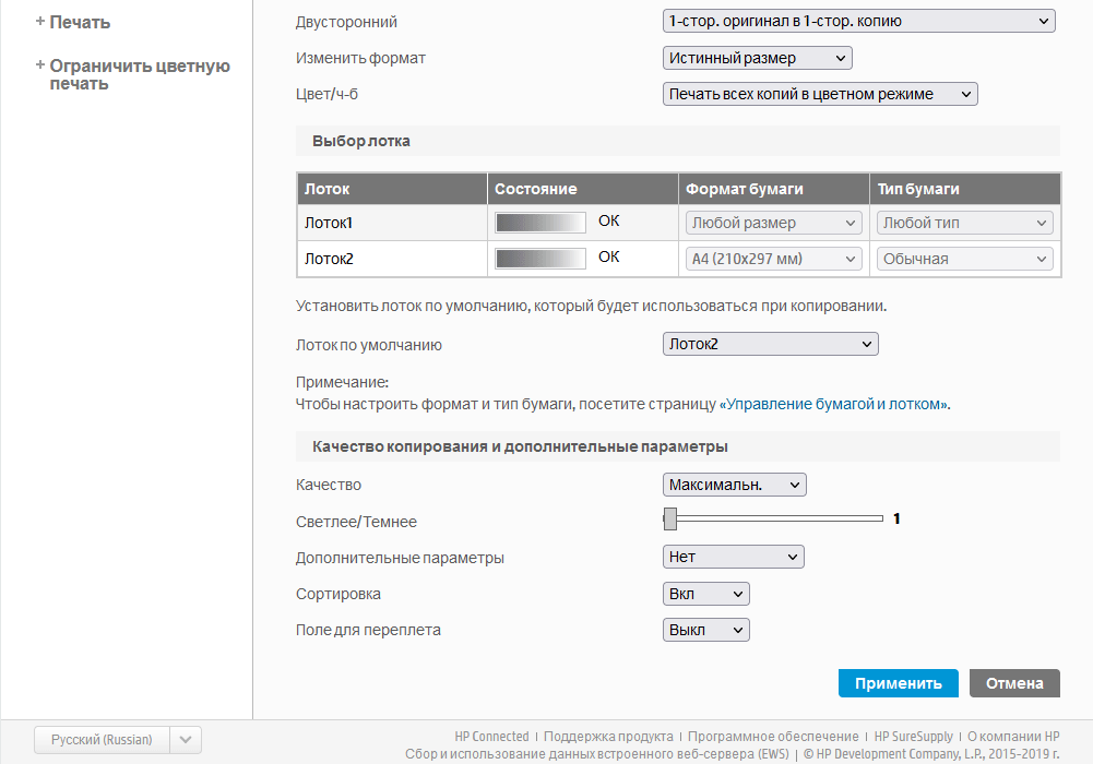 | Встроенное устройство двусторонней печати (duplex) | есть |