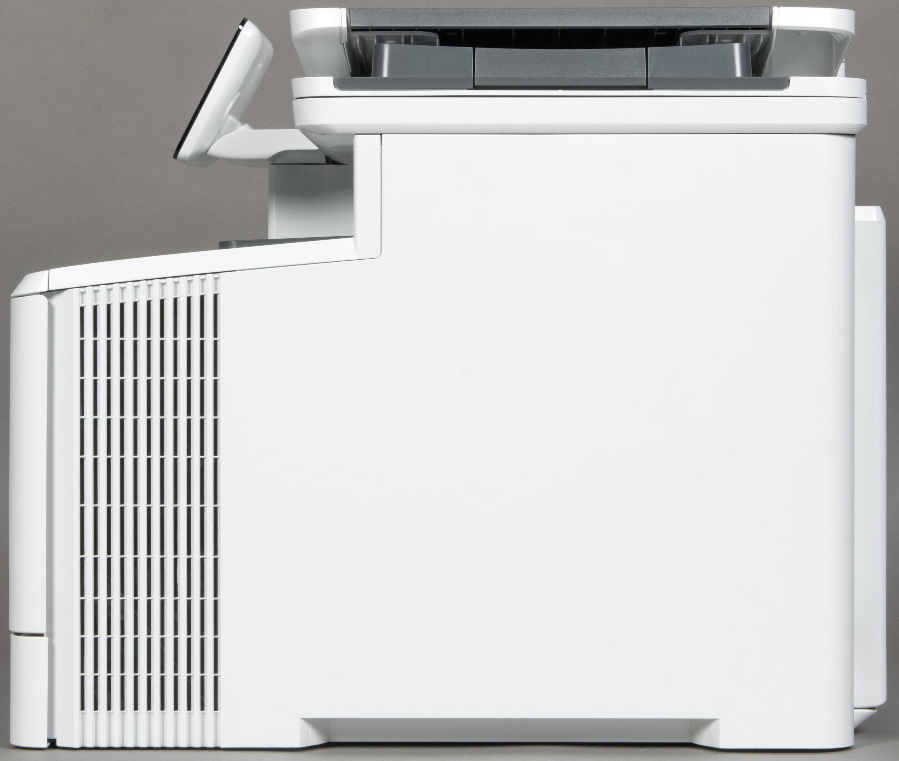 Компоновка аппарата самая обычная: внизу печатающий блок, вверху сканер, между ними приемный лоток вместимостью 150 листов (обычно указывается для бумаги плотностью 80 г/м²).