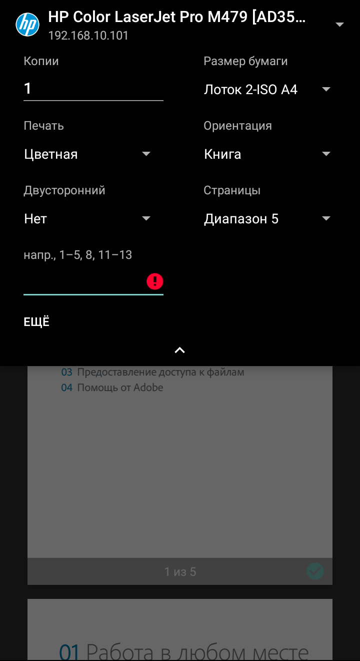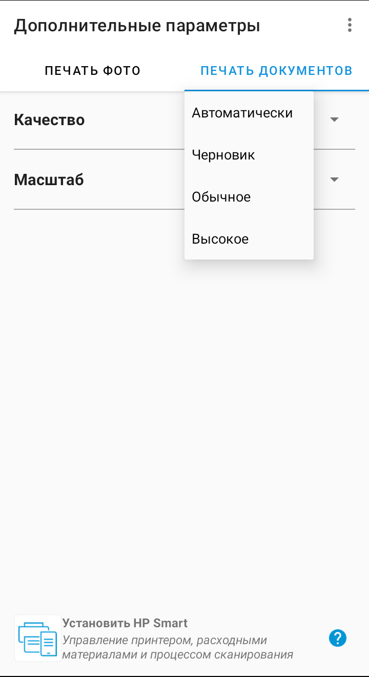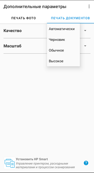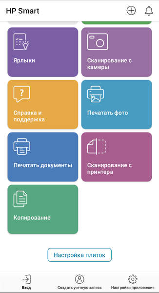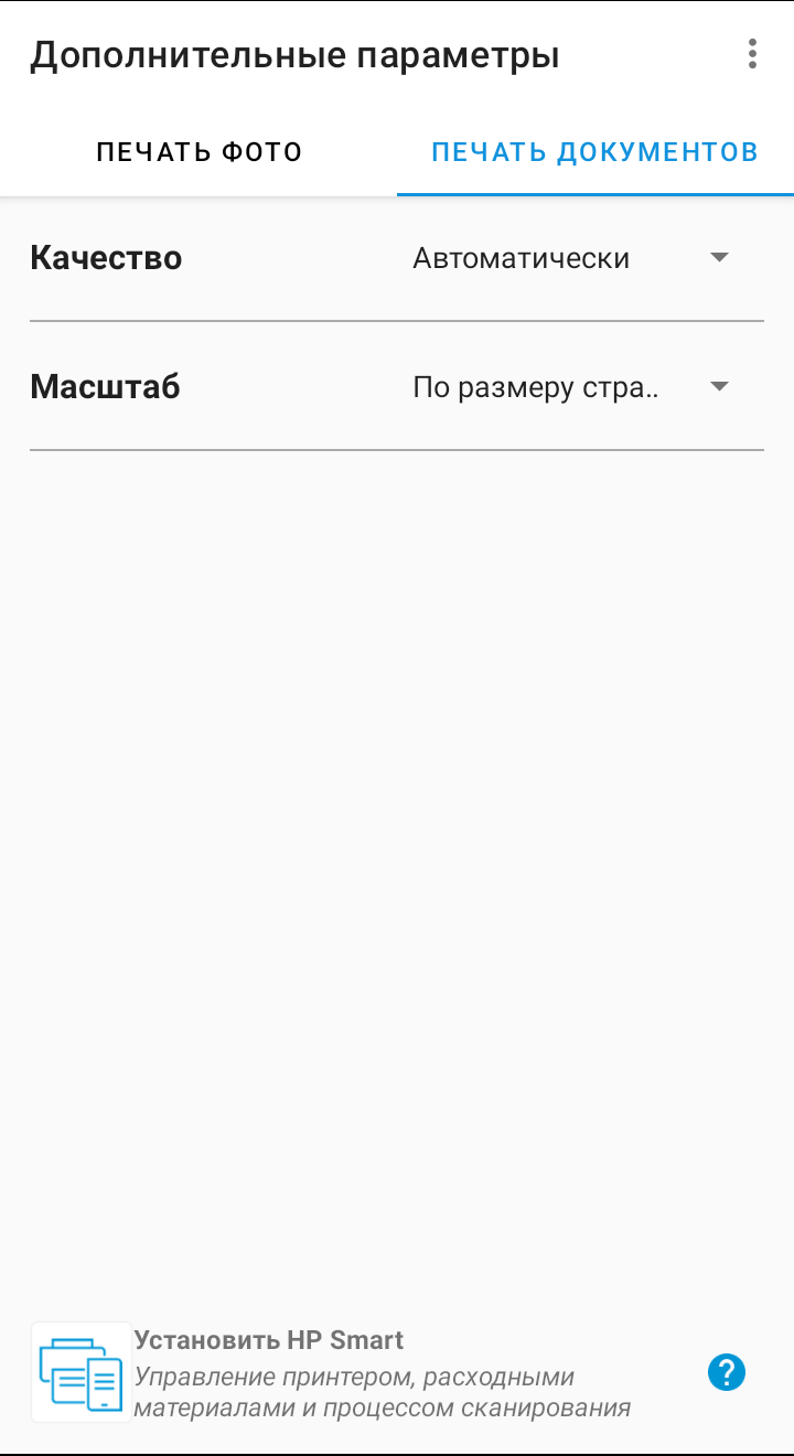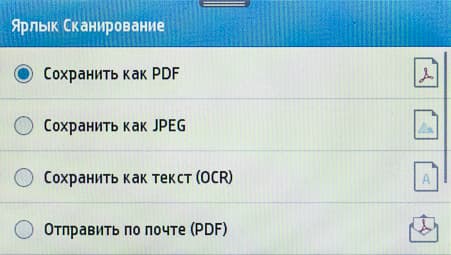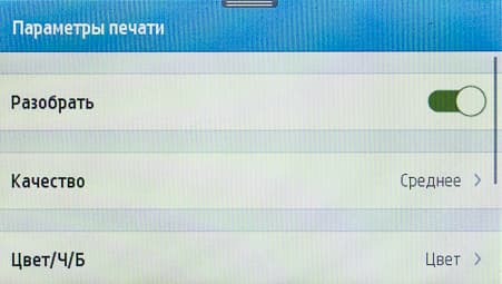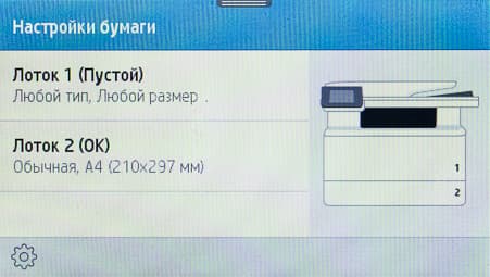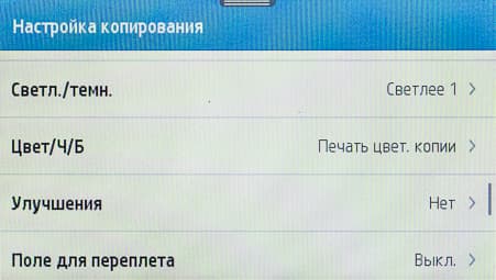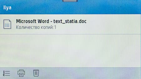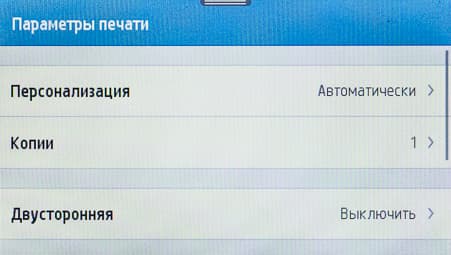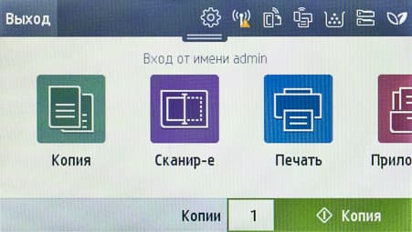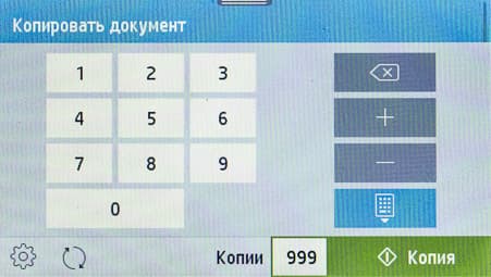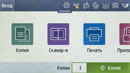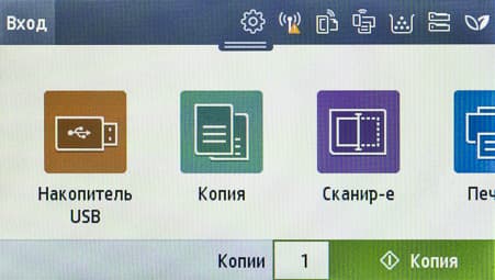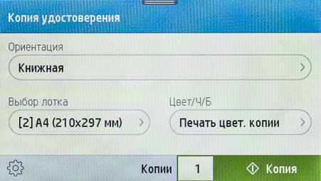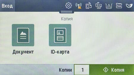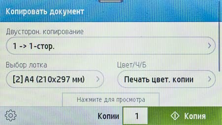 Узкая нижняя полоска также может содержать кнопки и отображает некоторые параметры: так, для копирования в ней будет показано заданное количество копий.