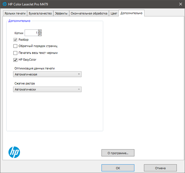 Опробовали влияние установки «HP EasyColor» в драйвере: по умолчанию она включена, при отключении разница получается трудноуловимой — чуть меняется цветопередача, но это заметно лишь при непосредственном сравнении.