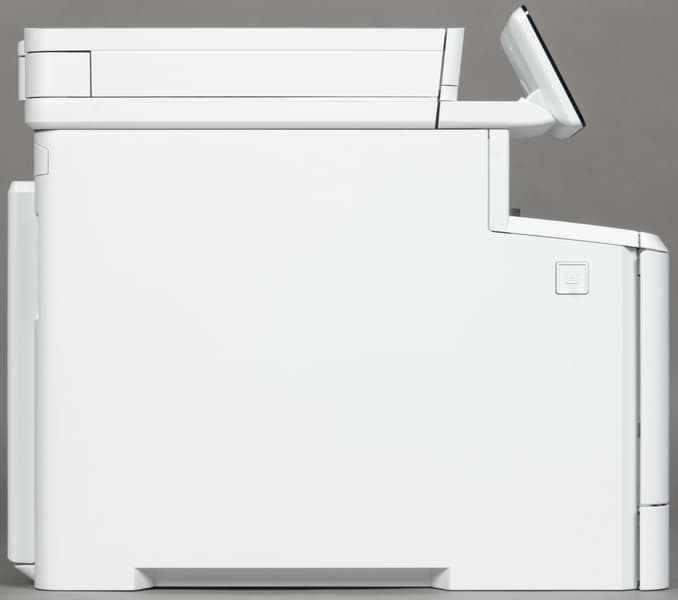 Аппарат поставляется с уже установленными картриджами. Как обозначено на сайте, они рассчитаны на 2400 черно-белых отпечатков А4 и 2100 цветных (здесь и далее по стандарту ISO/IEC 19798).