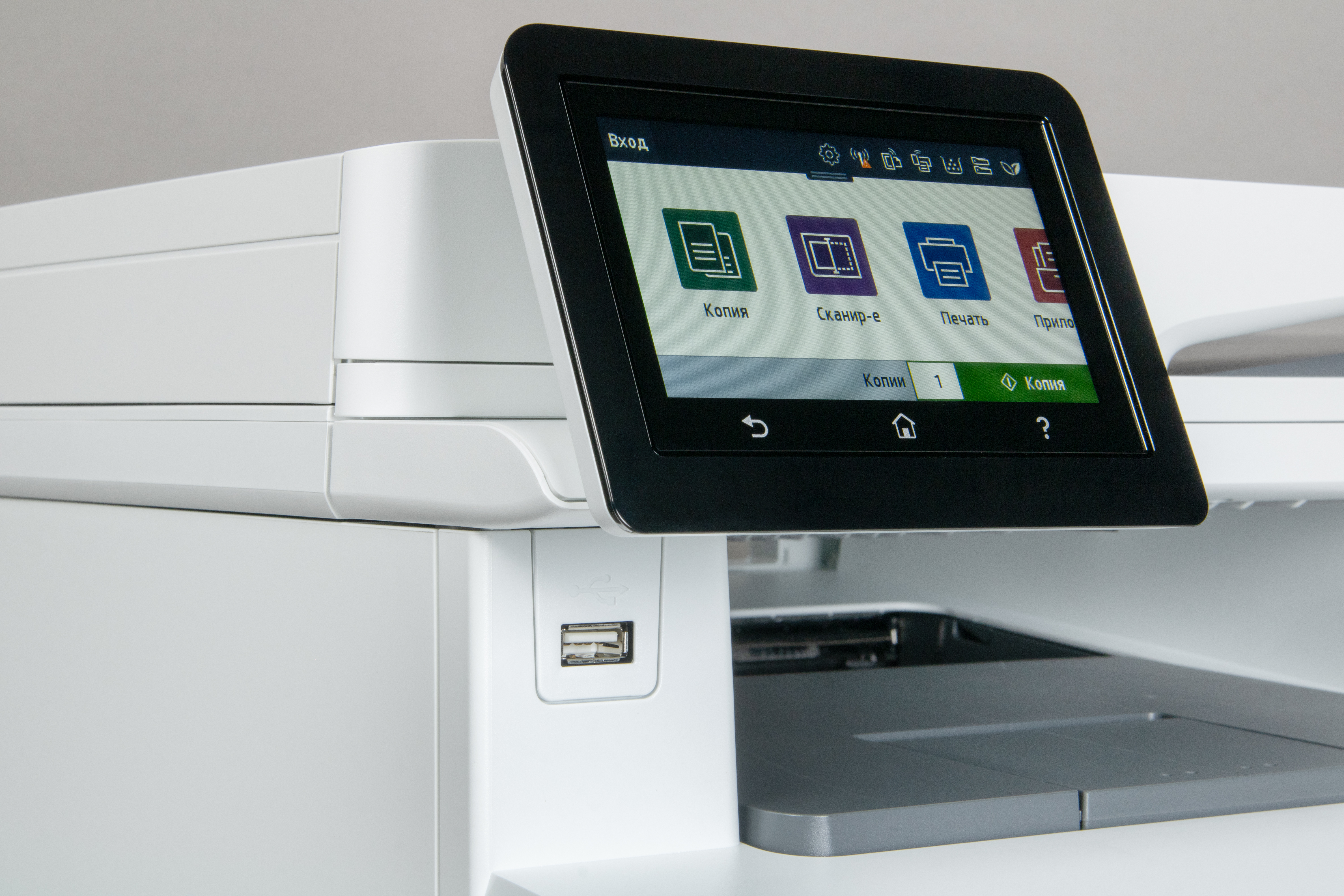 Под хорошим оснащением подразумевается следующее: помимо ставшего уже стандартом дуплекса (устройства автоматической двусторонней печати), аппарат имеет три интерфейса — локальный USB и два сетевых, проводной и беспроводной, а также легко доступный фронтальный порт для подключения USB-носителей, с которых можно печатать и на которые можно сохранять сканы в автономном режиме. Мобильные устройства могут взаимодействовать с МФУ еще и в режиме прямого подключения по Wi-Fi.