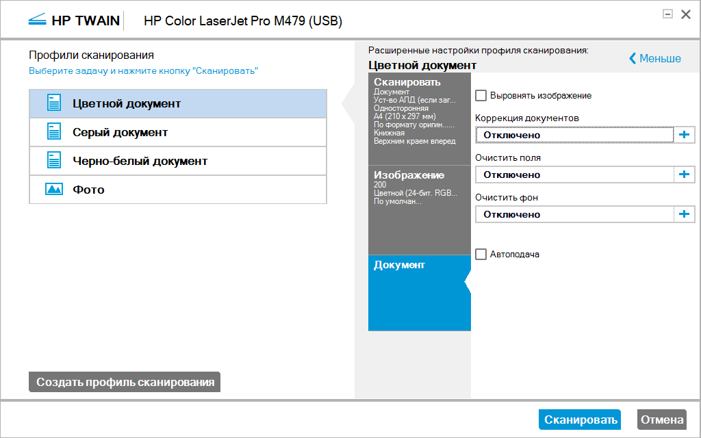 Напомним: при работе с АПД драйвер не позволяет задать разрешение выше 300 dpi, а двусторонний режим автоподатчиком в данной модели не поддерживается.