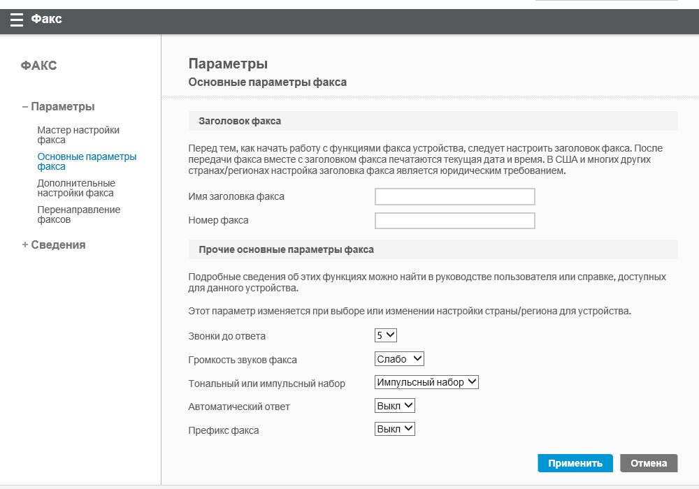| Функции | цветные и монохромные: печать, сканирование, копирование, факс |