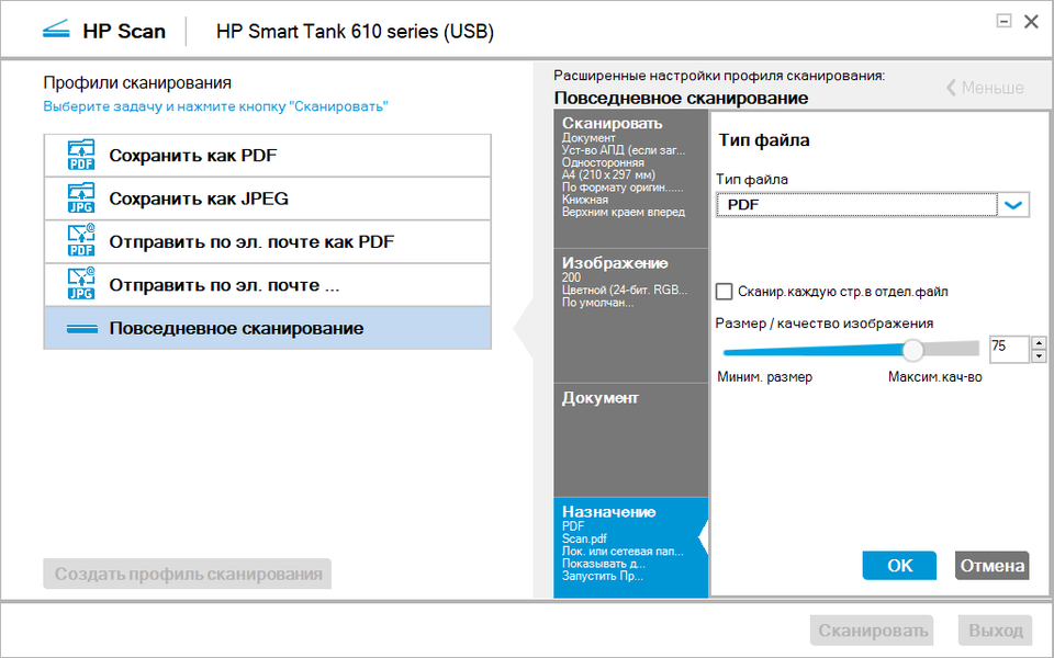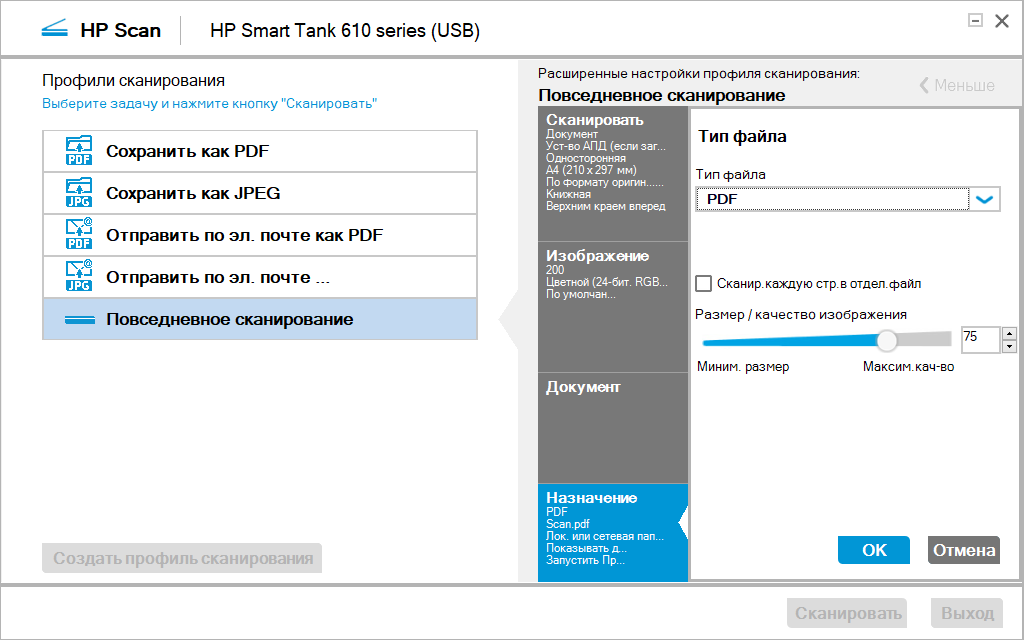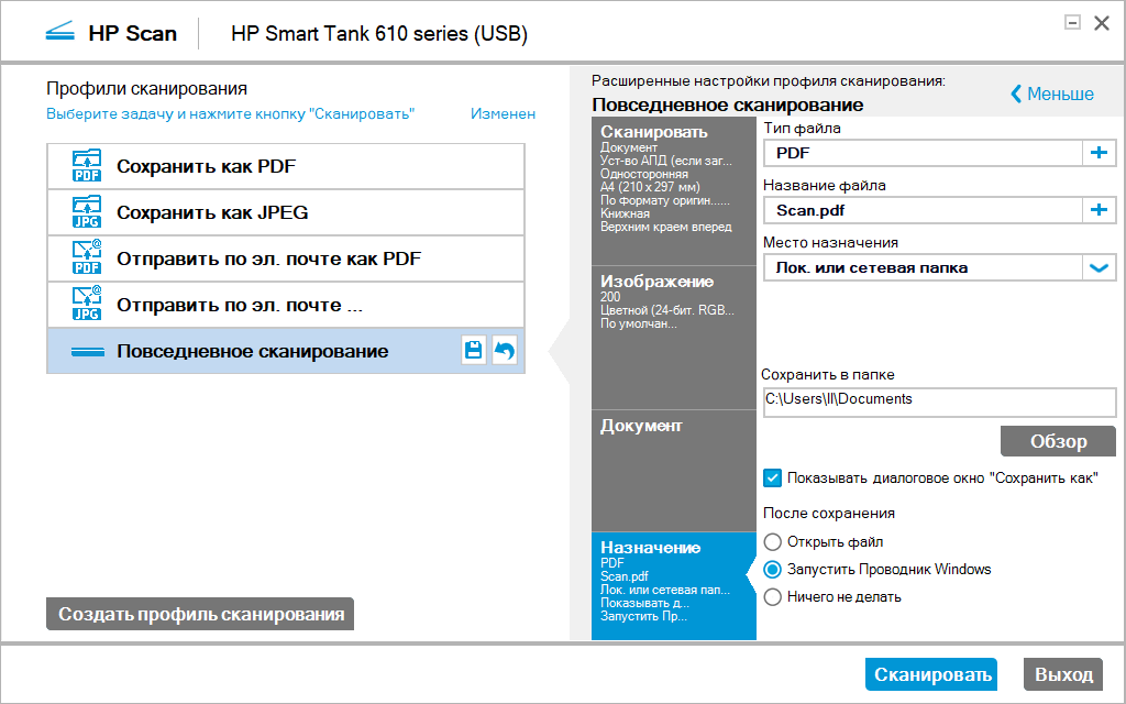 Для справки: при USB-подключении сканирование с планшета (стекла) полноцветного оригинала А4 без полей с разрешением 600 dpi в цвете заняло 1 минуту 10 секунд, с разрешением 1200 dpi — 4 минуты 21 секунду (при этом появилось предложение уменьшить разрешение, потому что файл получится большим, а сканирование займет много времени).
