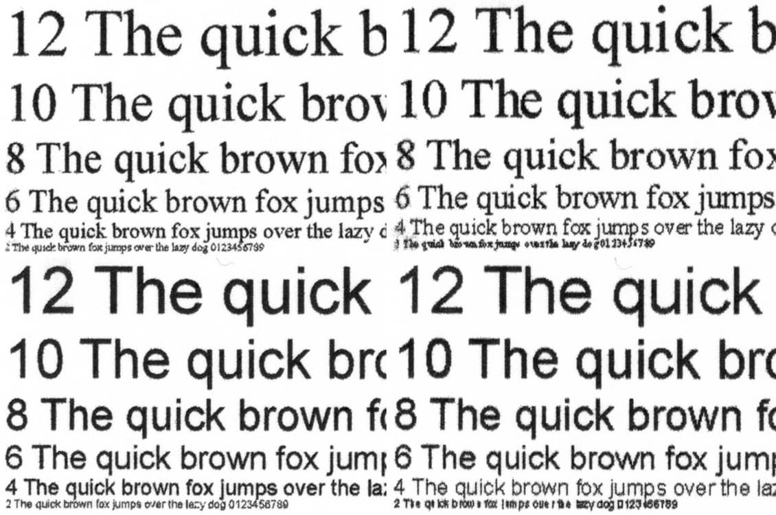 Тот же оригинал с установкой для бумаги «Обычная», с качеством «Обычный» и без улучшений копируется всего за 12 секунд, при этом читаемость также начинается с 4-го кегля, разве что шрифты с засечками такого размера читаются с некоторым трудом. Но надо учитывать: если бумага обычная не просто по названию, а дешевая и пористая, то результат наверняка будет заметно хуже.