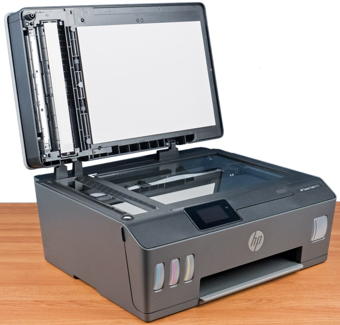 В предлагаемой компанией HP Inc серии Smart Tank анонсированы четыре модели МФУ: младшая Smart Tank 500 не имеет автоподатчика оригиналов и оснащена единственным USB-интерфейсом для подключения к компьютеру, следующая Smart Tank 515 отличается наличием двухдиапазонного модуля Wi-Fi и Bluetooth LE; индикатор в обеих — пиктографический с диагональю 2 дюйма.