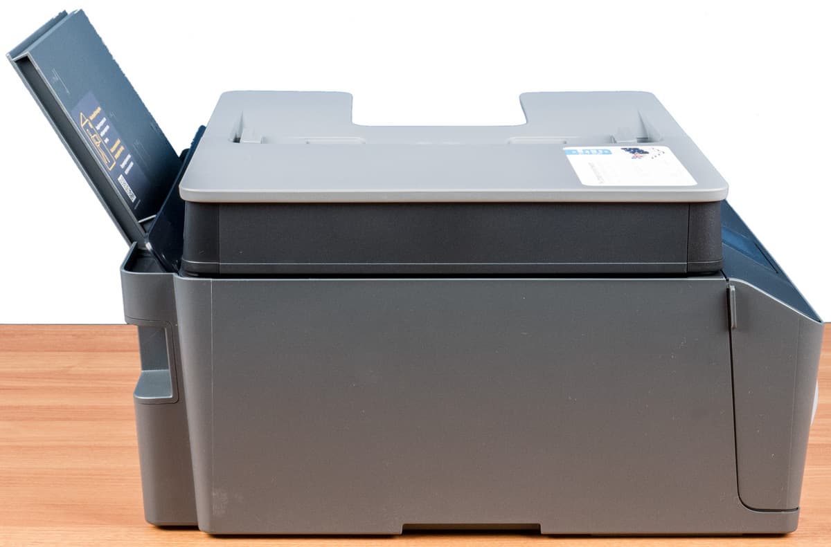 Нет сведений и еще об одном непременном атрибуте струйного принтера — абсорбере («памперсе»), устройстве сбора чернил, вытекающих из головок, например, во время их прочистки соответствующей сервисной процедурой. Абсорбер тоже время от времени надо заменять, а его счетчик сбрасывать; владельцы картриджных струйных принтеров редко сталкиваются с подобной проблемой, прежде всего по причине дороговизны картриджей, которая поневоле ограничивает объемы печати, а в данном случае вероятность столкнуться с заполнением «памперса» гораздо выше. Обслуживание абсорбера в большинстве моделей разных производителей относится исключительно к компетенции сервисных центров, то есть при активном использовании аппаратов серии Smart Tank это будет еще одна причина для визитов в АСЦ.