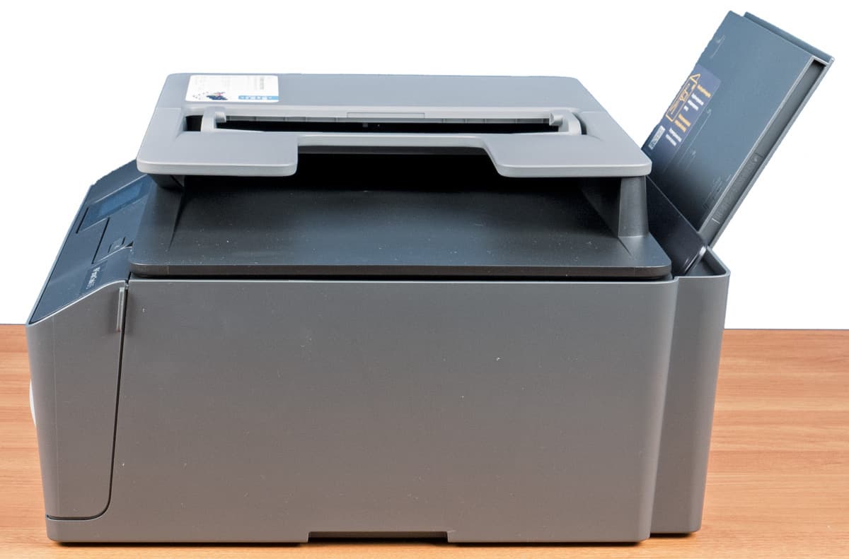 Подробно описывать эти наблюдения нет смысла, просто повторим совет вытягивать лоток полностью при работе с А4 и близкими форматами. Для меньших отпечатков вроде 10×15 см можно вытянуть только первую ступень с откидным элементом, причем даже частично.