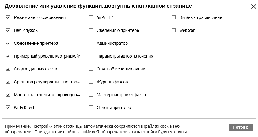 Какие-либо опции для МФУ серии не упоминаются, что вполне нормально для данного сегмента печатающих устройств.