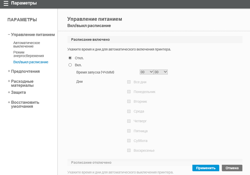 | Потребляемая мощность: выключенный спящий режим в режиме готовности при печати/копировании | ≤ 0,11 Вт ≤ 0,71 Вт ≤ 3,82 Вт н/д |