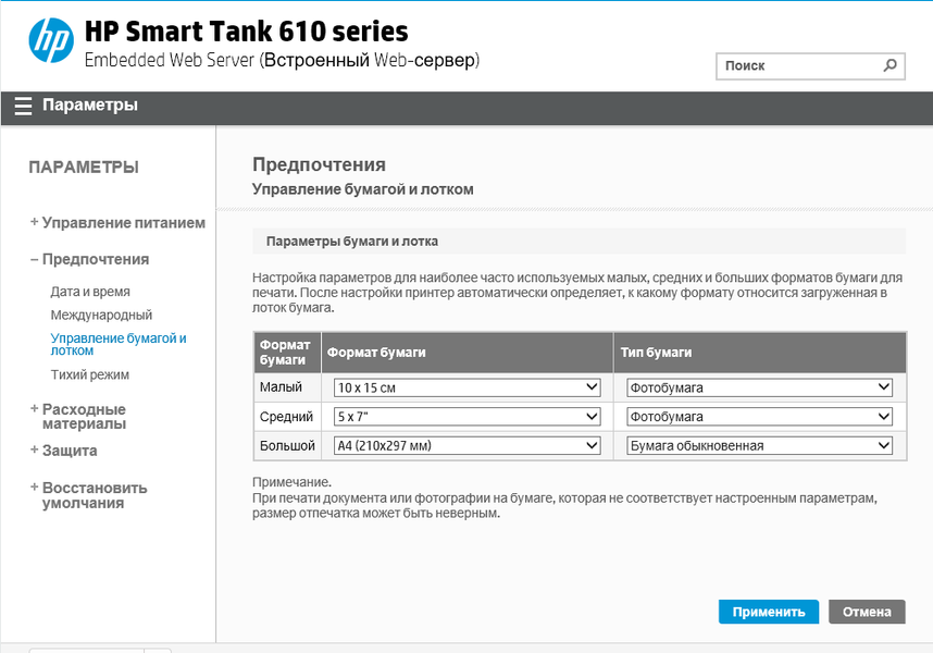 | Поддерживаемая плотность бумаги | обычная бумага: 60—90 г/м² фотобумага: до 300 г/м² |