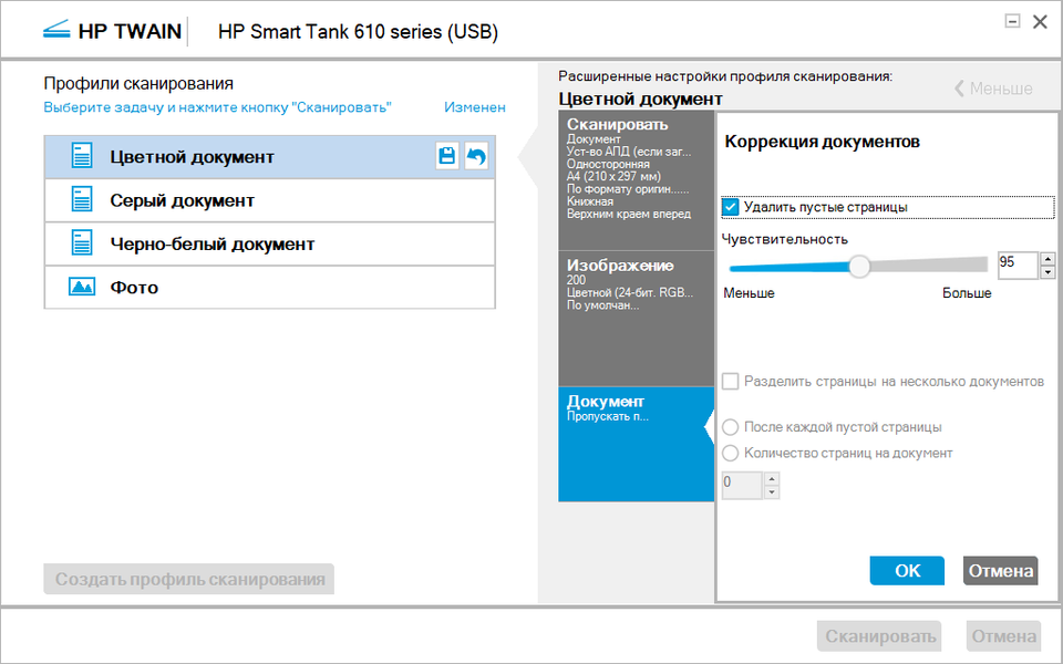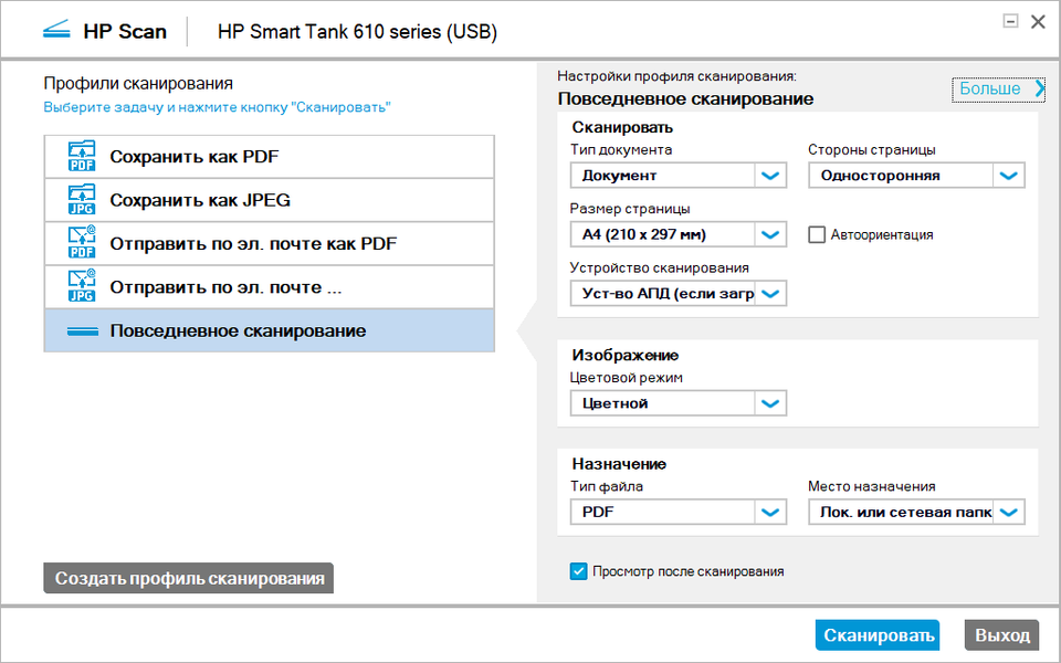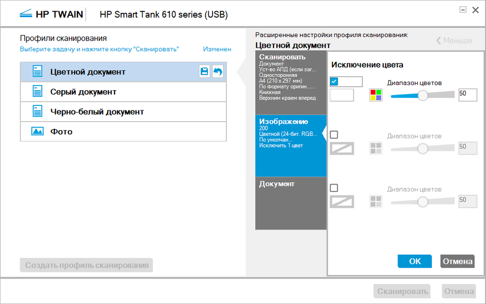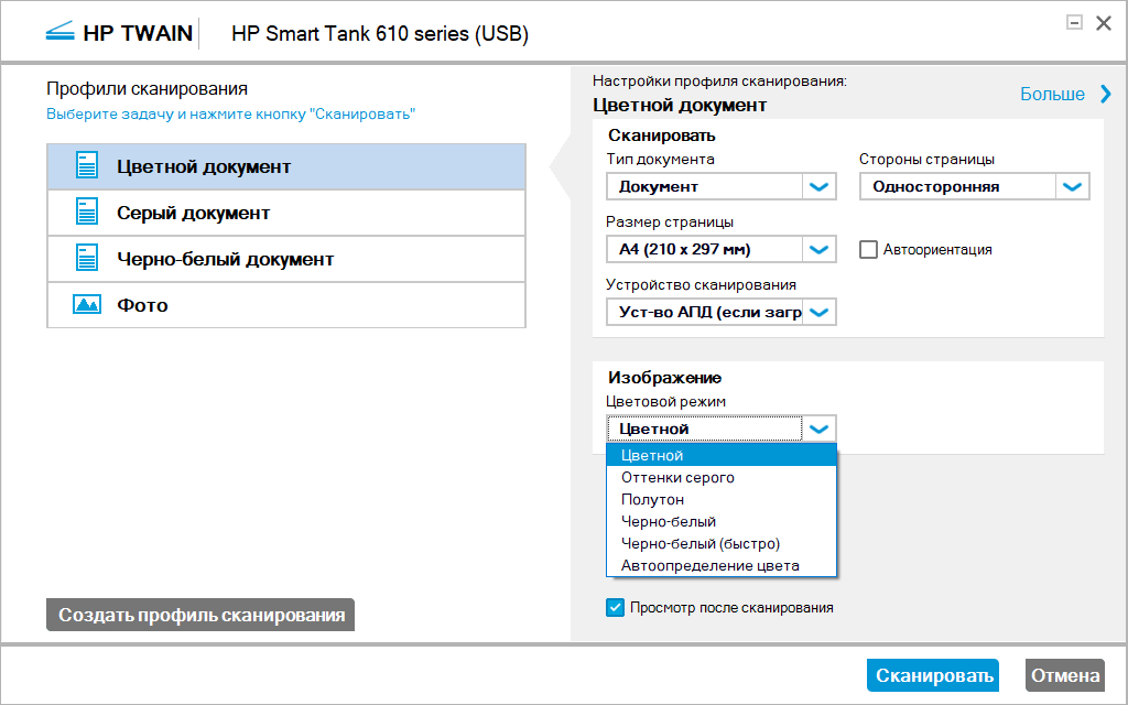 При сканировании в цвете объем данных заметно возрастает, передача идет дольше, и время выполнения задания увеличивается в полтора раза.