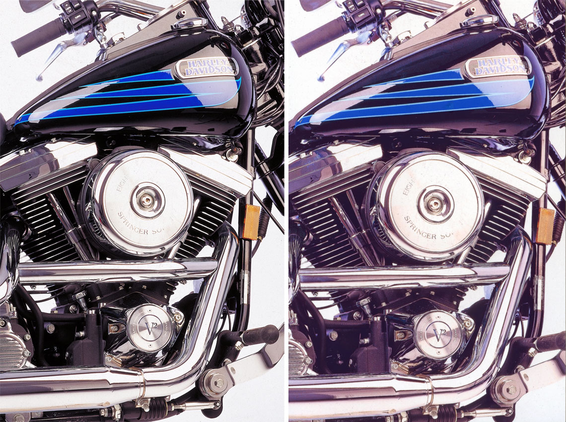 Изображения, на которых световые блики сочетаются с глубокими и резкими тенями, воспроизводятся нормально, но опять с точностью до цветопередачи: мы приводим скан отпечатка и оригинал (вновь напоминаем о неполной корректности такого сравнения — сканер вносит свои искажения, но общее впечатление все же передается).