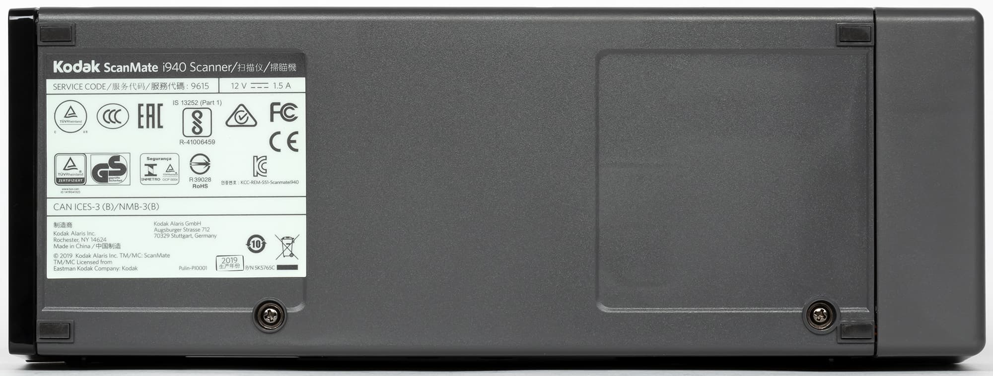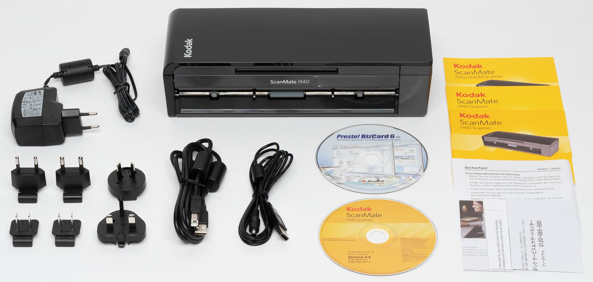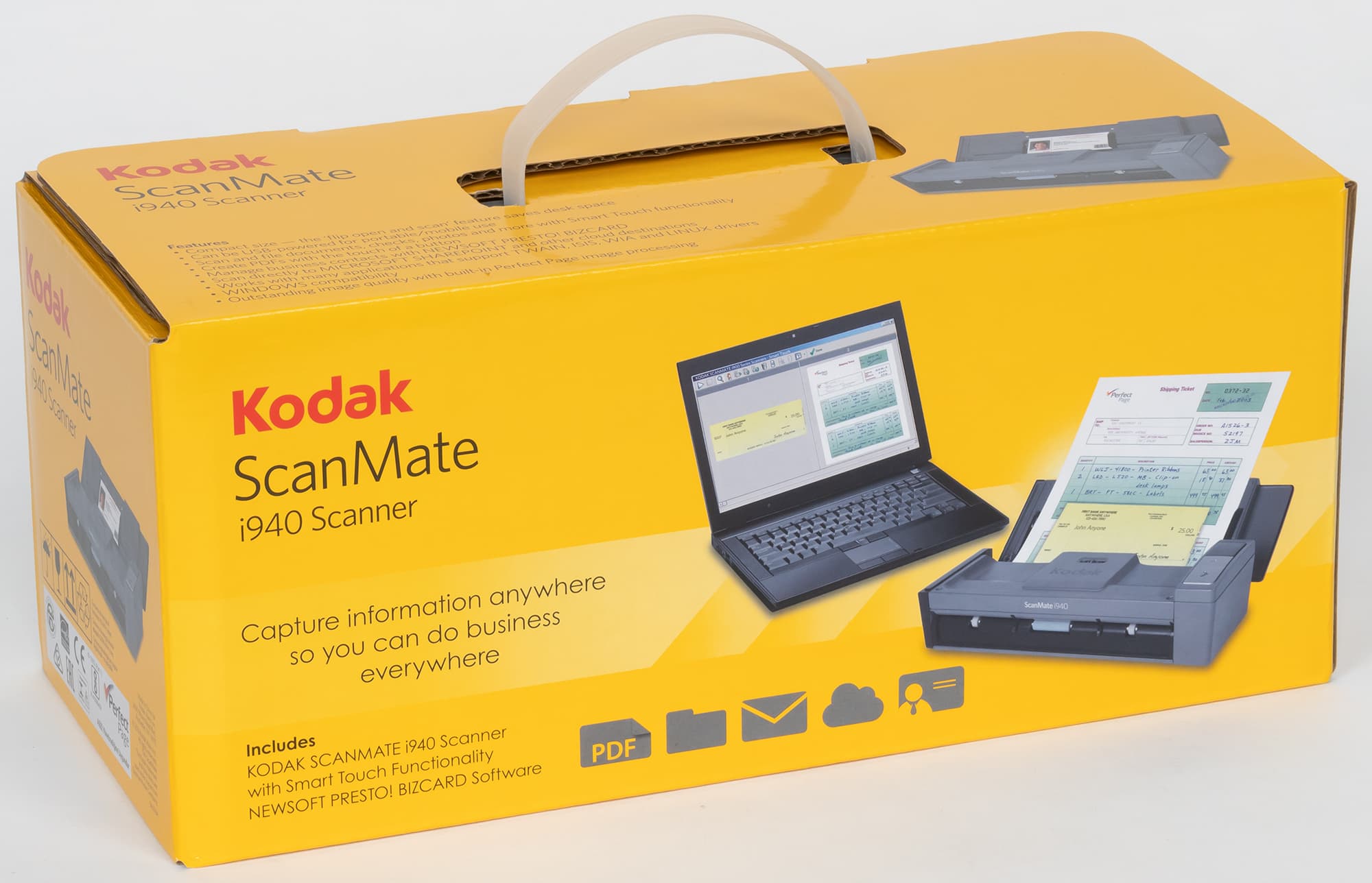 Kodak ScanMate i940 — компактный двусторонний сканер документов, предназначенный для использования в качестве персонального. Для подключения к ПК имеется единственный интерфейс USB 2, при этом предусмотрены два варианта питания: от сети переменного тока через адаптер и от порта USB, то есть сканер может использоваться в качестве мобильного совместно с ноутбуком.