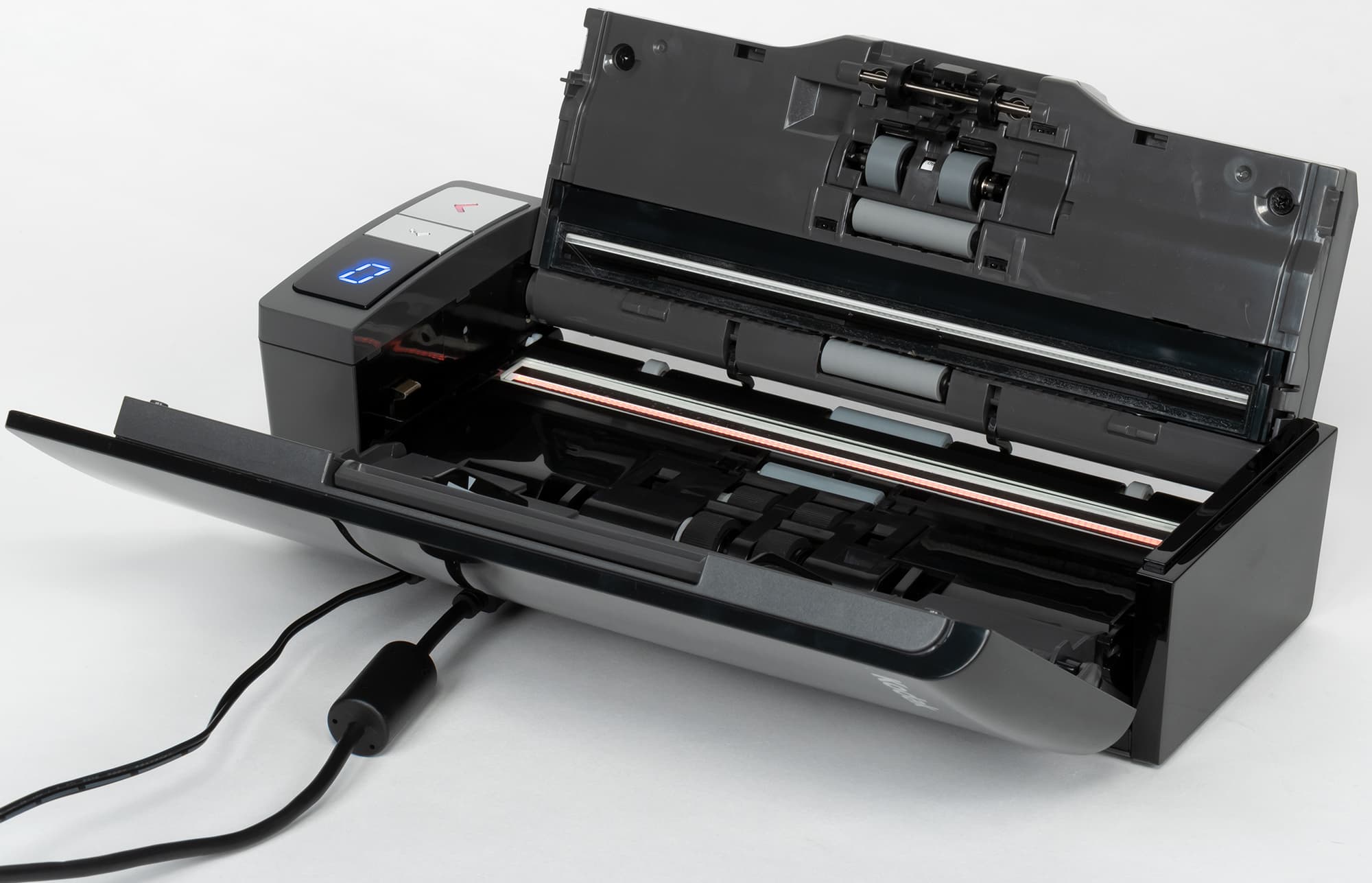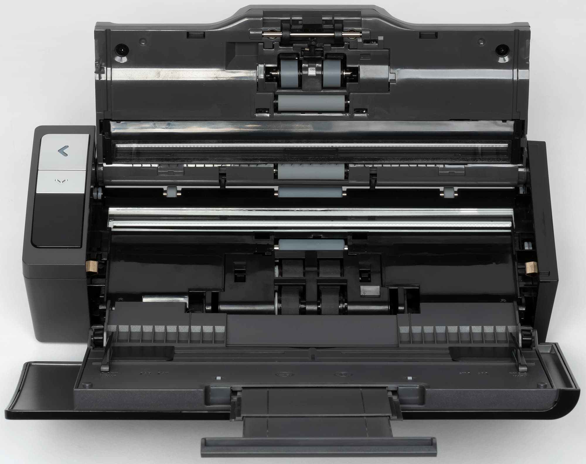 При тех объемах сканирования, на которые рассчитана данная модель, обслуживание должно быть регулярным: после прохождения через сканер многих тысяч документов внутри неизбежно будет накапливаться бумажная пыль, ухудшающая качество сканирования, да и поверхности роликов будут загрязняться, что может вызвать сбои в подаче.