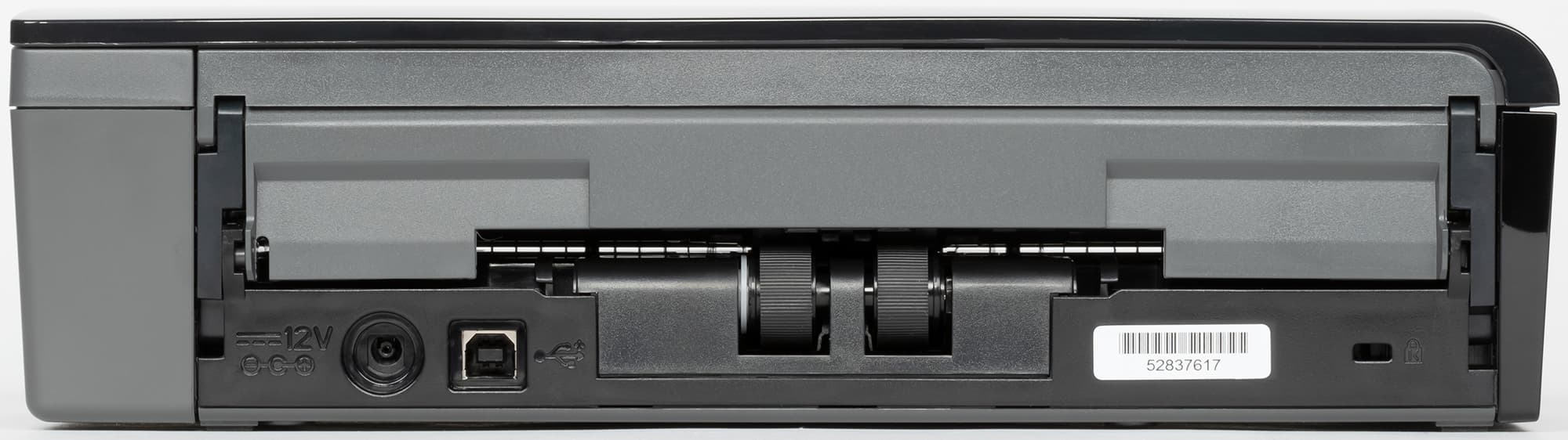 Подключаемые к ним кабели будут находиться «в тени» подающего лотка, а потому не потребуют дополнительного свободного места за сканером.