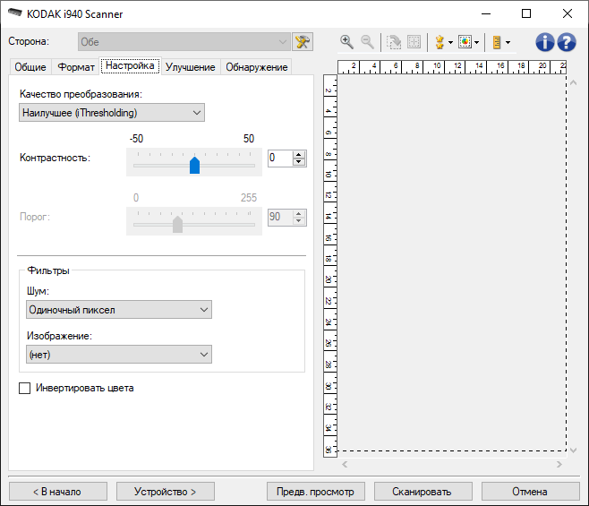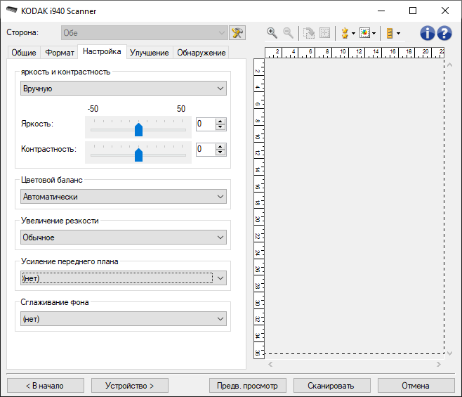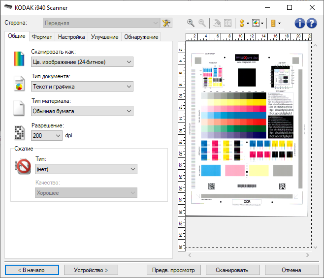 Интерфейс драйвера TWAIN очень похож на тот, что мы видели при тестировании Kodak Alaris S2070 и S2060w, однако есть и существенные отличия в наборе настроек, связанные со спецификой модели. Поэтому опишем возможности подробнее.