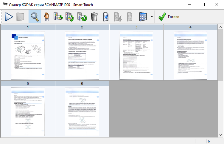 Интерфейс драйвера состоит из трех страниц, переходы между которыми осуществляются кнопками слева в нижней части окна. Как и в WIA, возможен предварительный просмотр, после которого документ придется вернуть в подающий лоток.