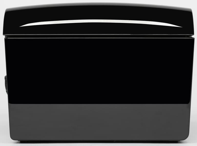 По форме аппарат очень похож на большой школьный пенал или на средних размеров шкатулку: его корпус имеет форму сильно вытянутого бруска. Цвет — сочетание глянцево-черных верхней, а также одной из боковых поверхностей, и темно-серых матовых остальных.