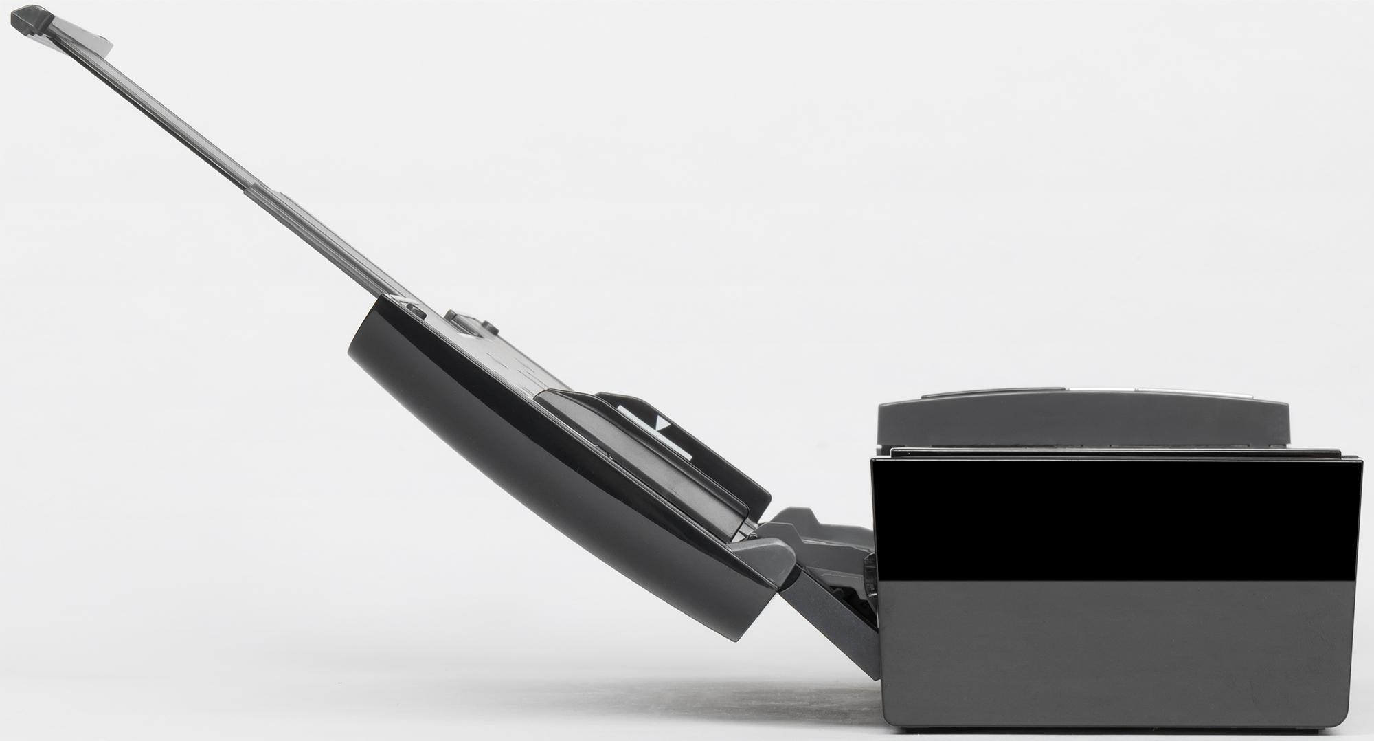 Для обслуживания (очистки) следует откинуть фронтальную часть сканера, после чего открывается доступ к сканирующим линейкам, роликам и другим компонентам.