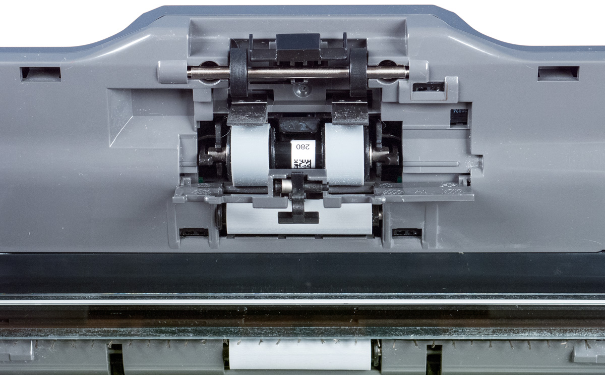 Для такой замены предлагаются два вида ЗИПа: модуль разделения 177 5246 и модуль подачи 846 7839, ориентировочная цена $70 за полный комплект. В представительстве компании нас заверили, что они постоянно доступны у дистрибьютора, но при эксплуатации сканера с интенсивностью, близкой к заявленному ежедневному максимуму, лучше заранее позаботиться о закупке.