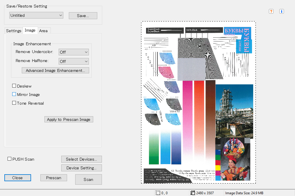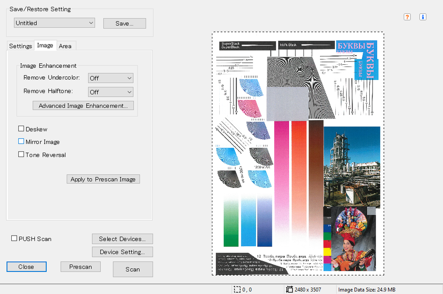 Можно сделать замечания к цветопередаче, например, серый фон на изображениях приобретает отчётливый жёлтый оттенок, но это можно попытаться скорректировать имеющимися настройками, к тому же для подобных документов точная передача оттенков редко играет определяющую роль.