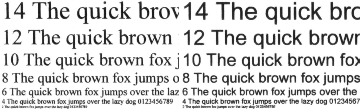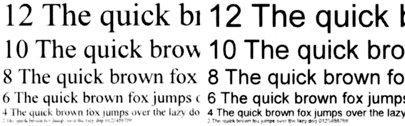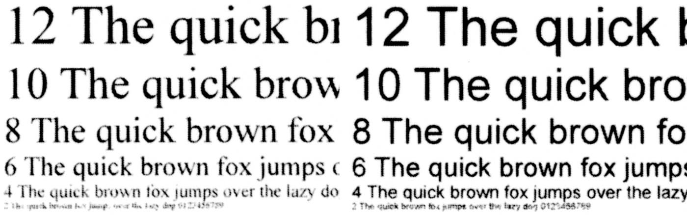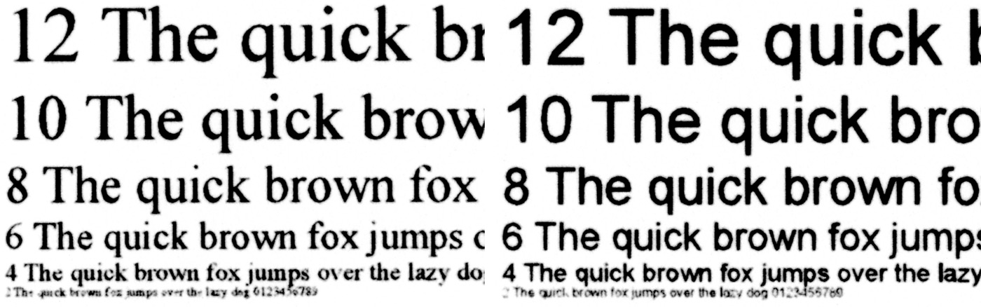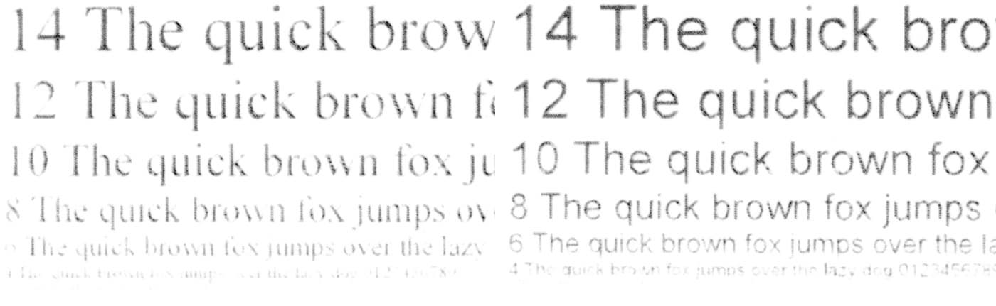 На читаемости это сильно не сказывается, разве что 4-й кегль с засечками различим немного хуже, однако с учётом значительной разницы в скоростях печати рекомендовать повышение разрешения для текстовых документов мы не можем.
