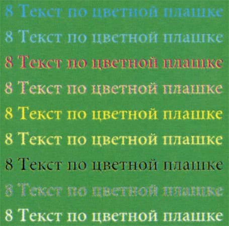Цветные надписи на зеленой плашке в целом читаемые, но не все одинаково хорошо.