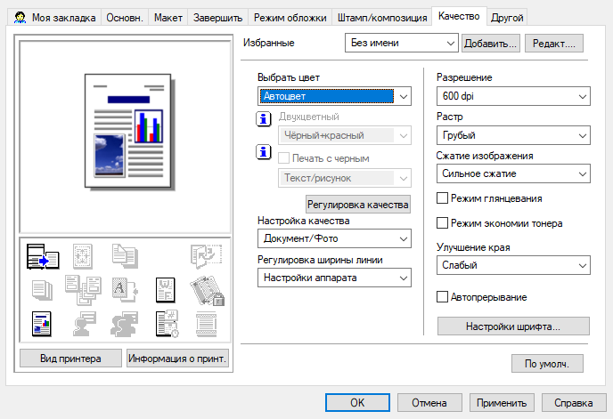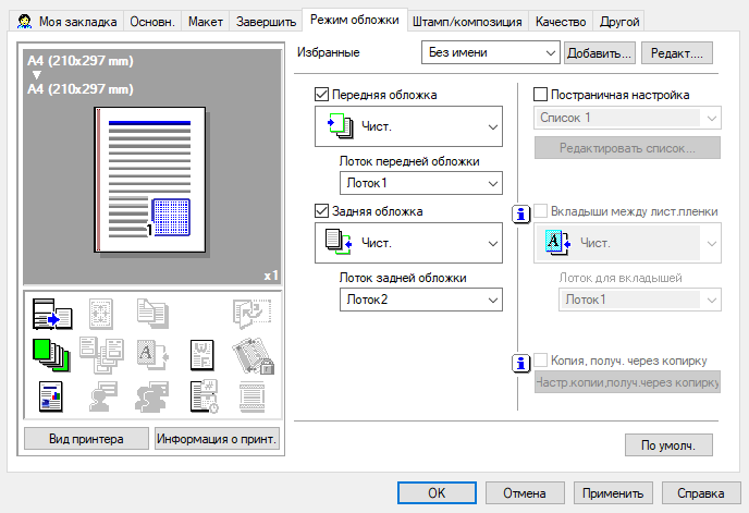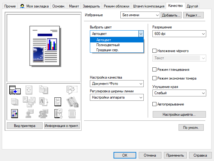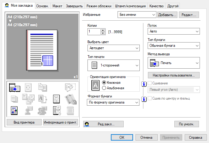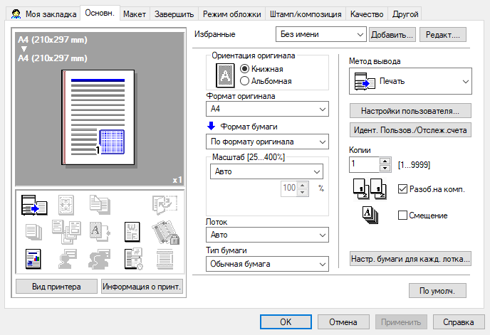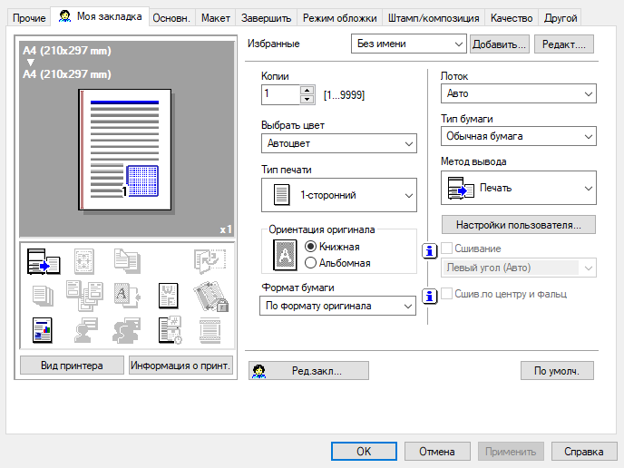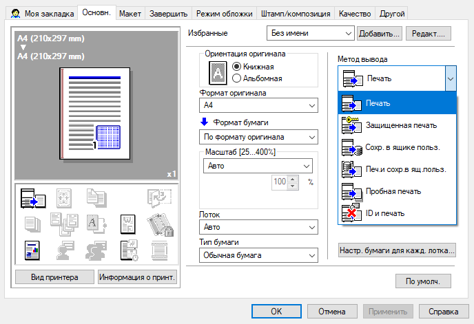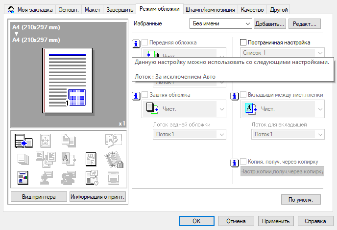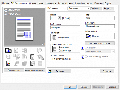 Как водится, некоторые настройки являются взаимозависимыми: например, копирование карт нельзя задействовать с автовыбором бумаги, лоток придётся задать вручную.