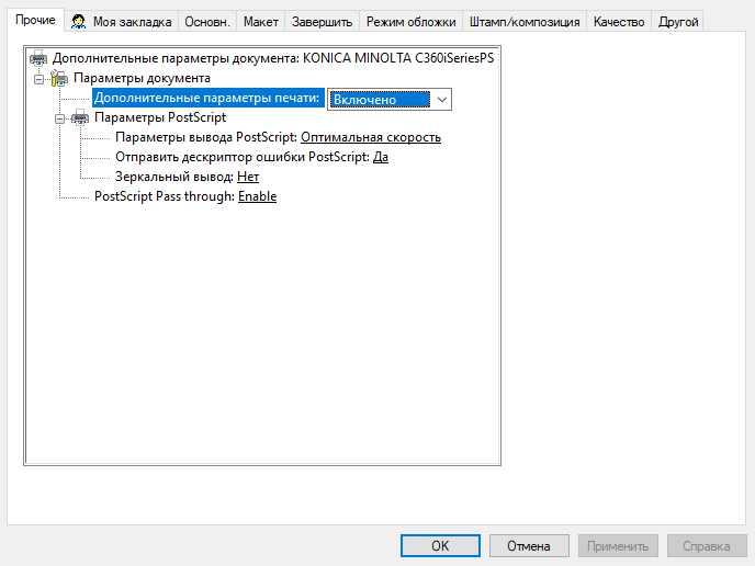 Драйвер PostScript на таком задании даёт чуть большую скорость печати, но в любом случае она меньше заявленной.