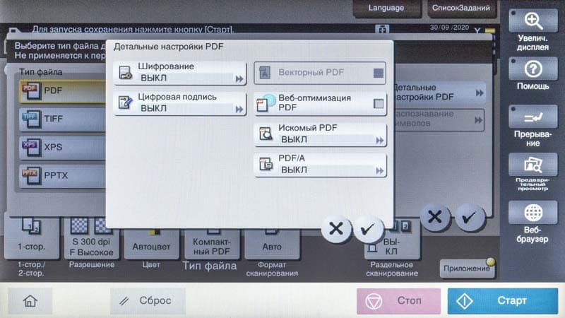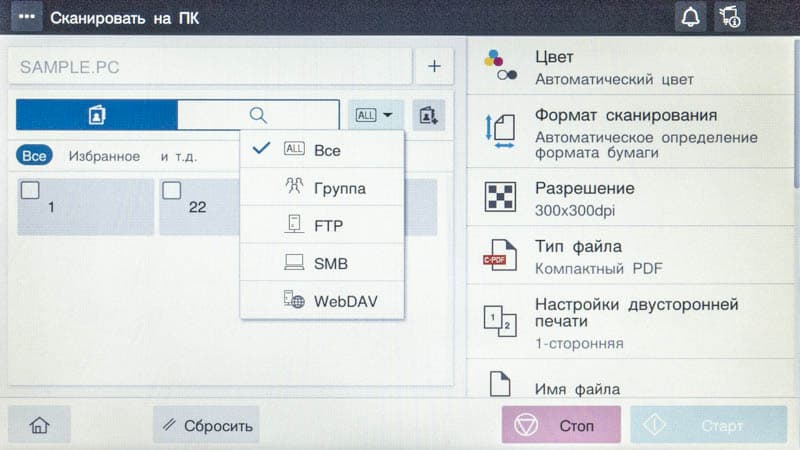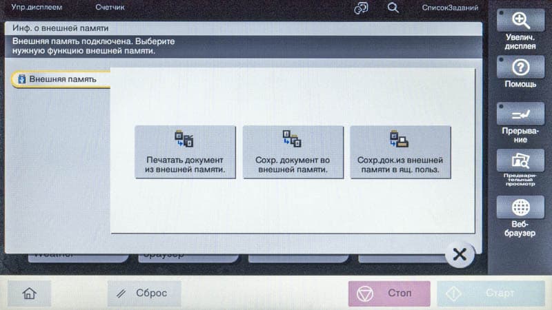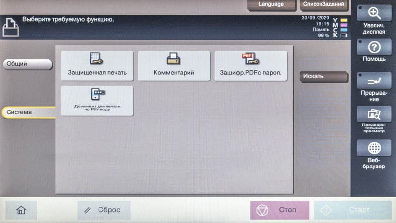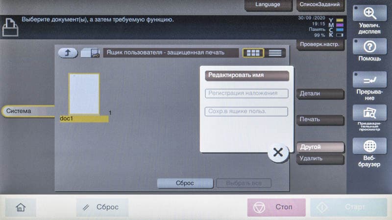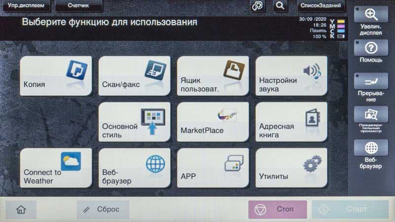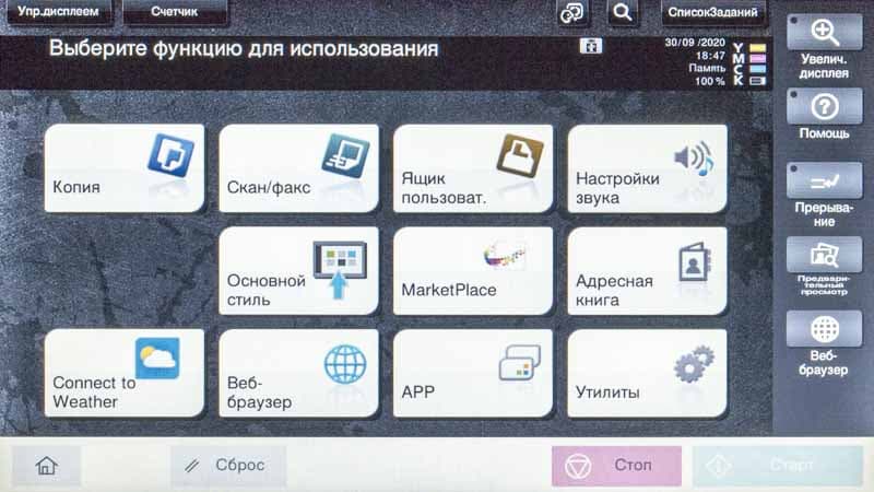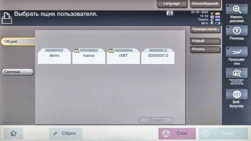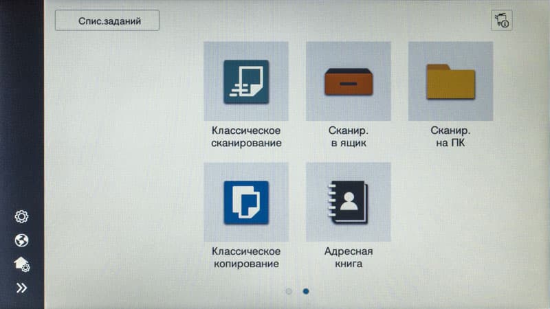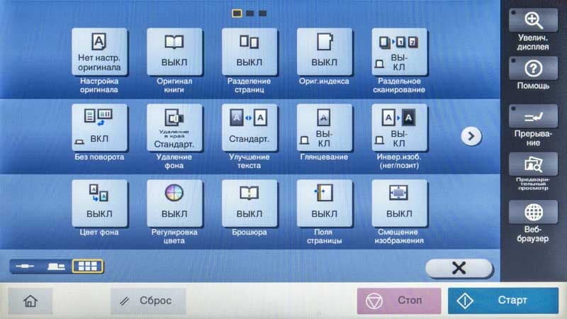 Для этого и прочих режимов работы МФУ вновь отметим: различных настроек и установок очень много, даже просто перечислить их в рамках обзора не представляется возможным, поэтому ограничиваемся лишь некоторыми. В плане освоения надо сказать: для тех, кто ещё не «общался» с подобной техникой компании Konica Minolta, многое поначалу кажется необычным (точнее, непривычным), но для более-менее опытного пользователя разобраться с основными действиями не составит труда даже без тщательного изучения инструкций.