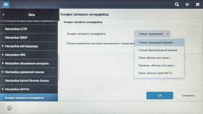 Есть опциональный адаптер беспроводной сети и плата факса, устройства идентификации по картам и даже по отпечатку пальца, различные модули: оптического распознавания (позволит при сканировании создавать документы PDF с возможностью поиска), печати штрих-кодов и т. п.