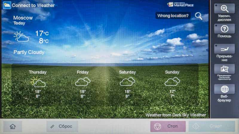 Спереди выделяется панель управления с большим цветным сенсорным ЖК-дисплеем, диагональ которого составляет 25,6 см (10,1″), разрешение 1024х600 точек.