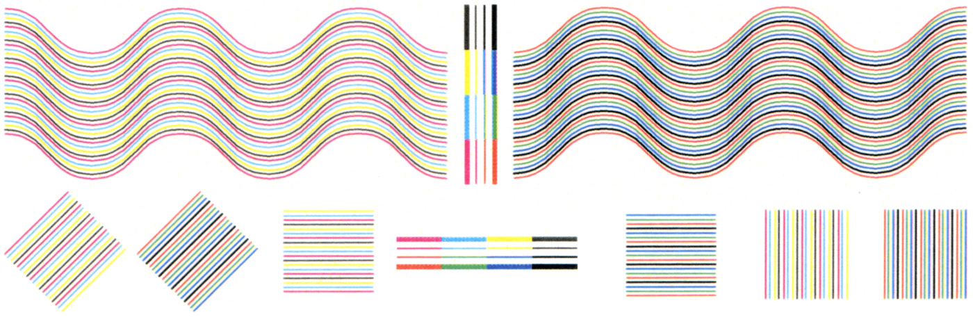 Совмещение красок по горизонтали хорошее, по вертикали чуть хуже. Тонкие линии воспроизводятся без заметных даже с лупой разрывов, на изогнутых линиях ступенчатая структура выражена слабо, но кое-где наблюдаются незначительные перетекания. Здесь надо напомнить, что наш аппарат уже немало поработал, и следует провести сервисную процедуру регистрации цветов («Утилиты – Экспертная регулировка»), чтобы поправить ситуацию.