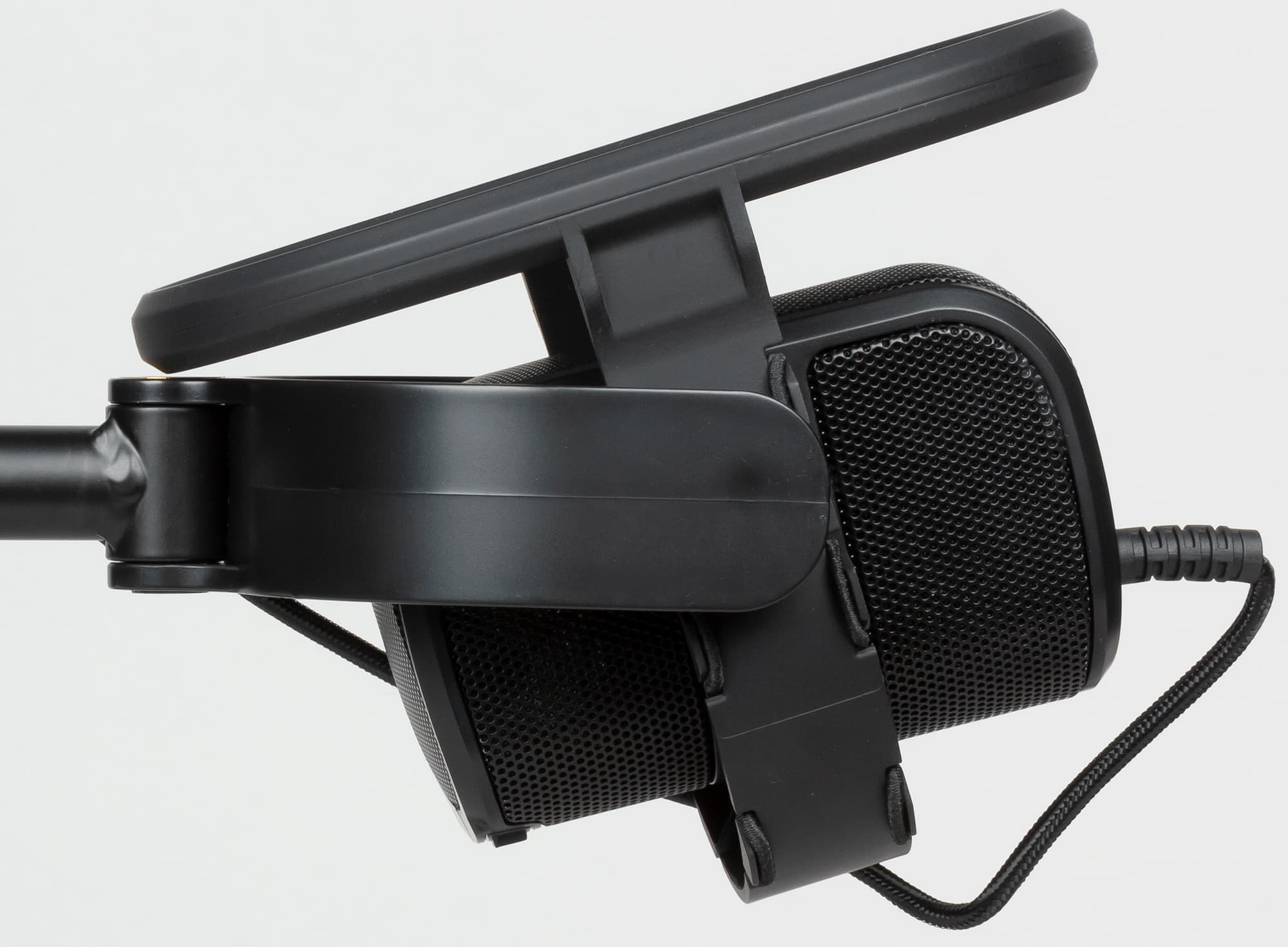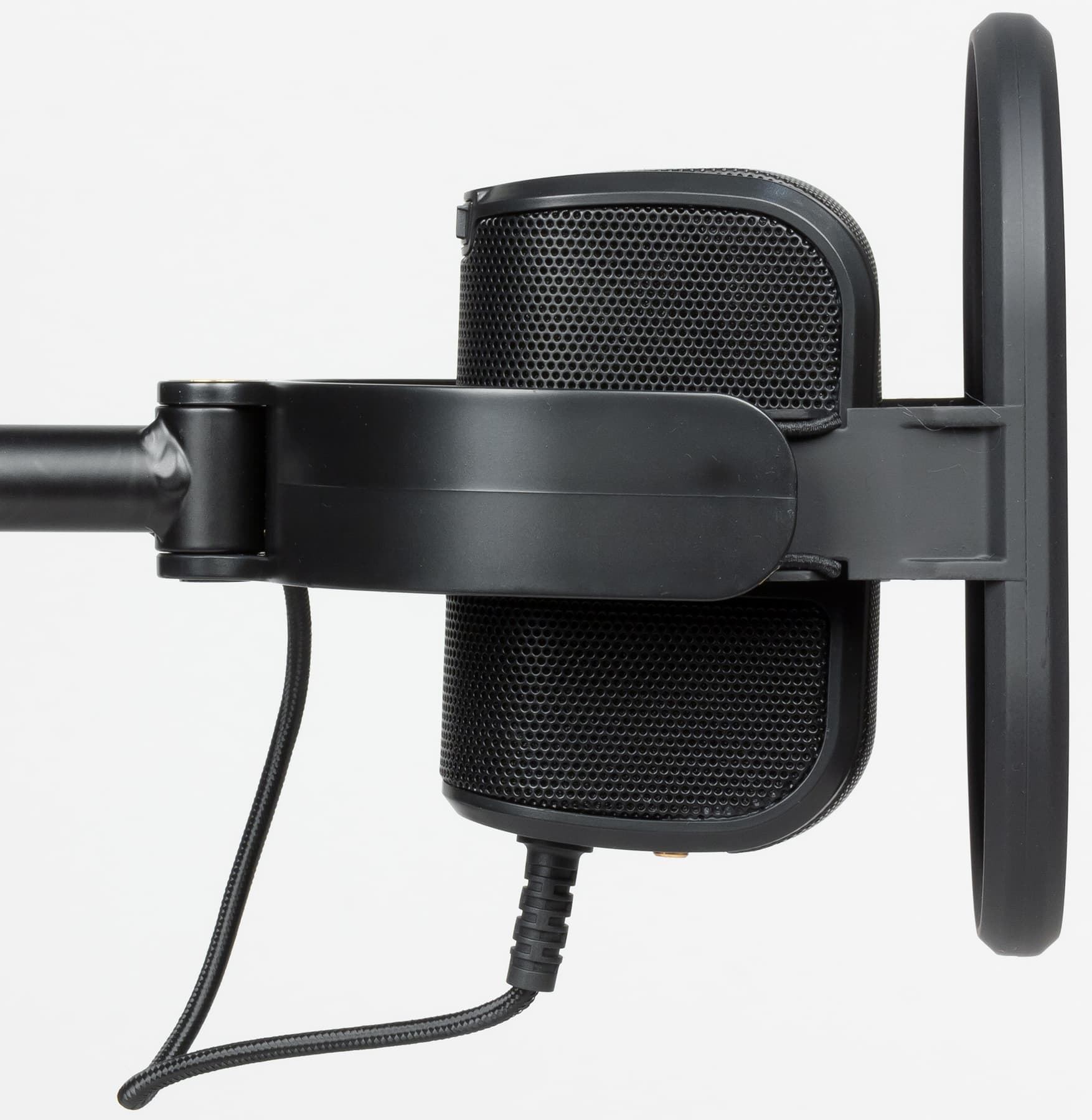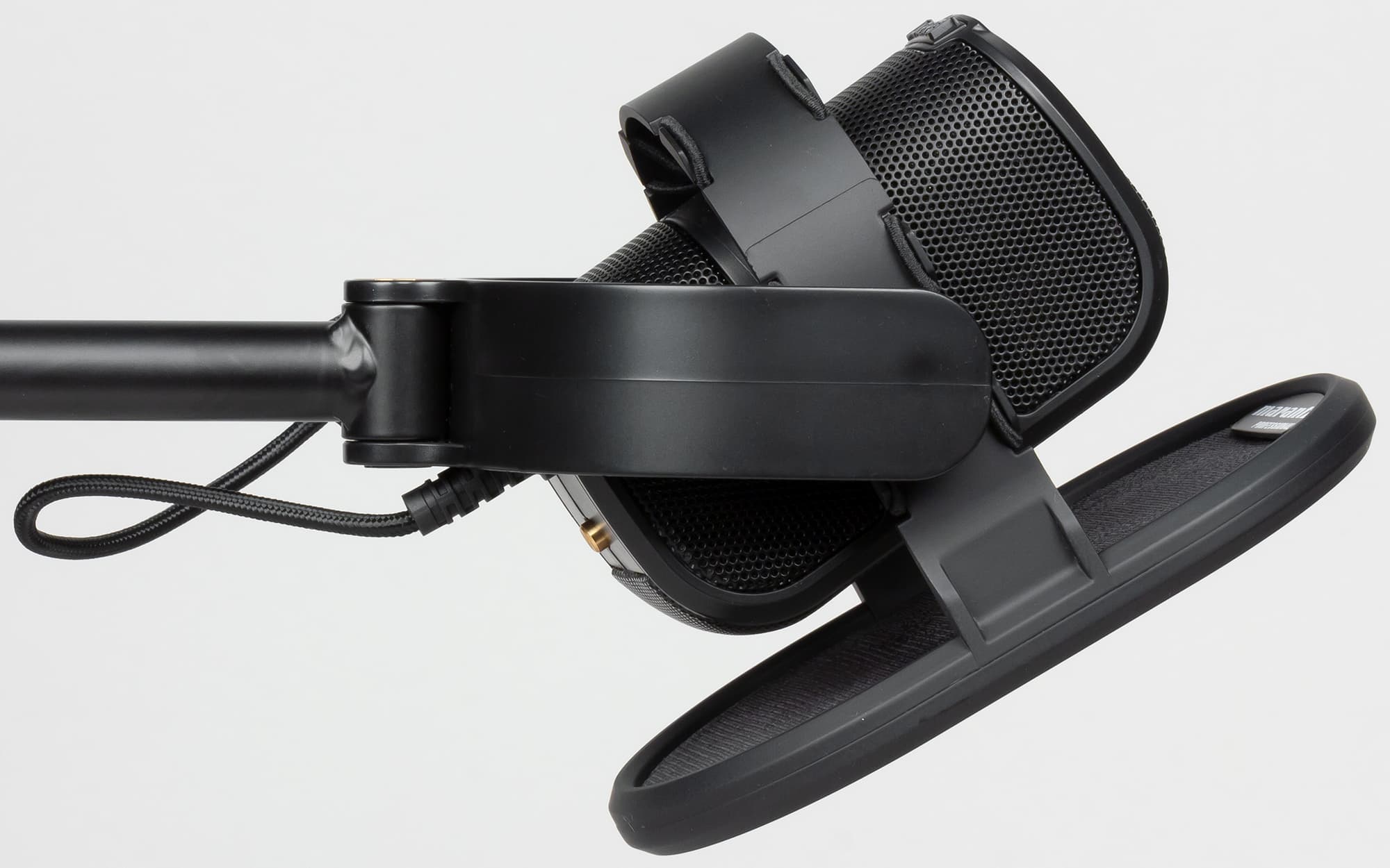 Ниже расположено металлическое крепление штанги микрофона. Крепление выполнено качественно: люфты отсутствуют, движение штанги плавное.