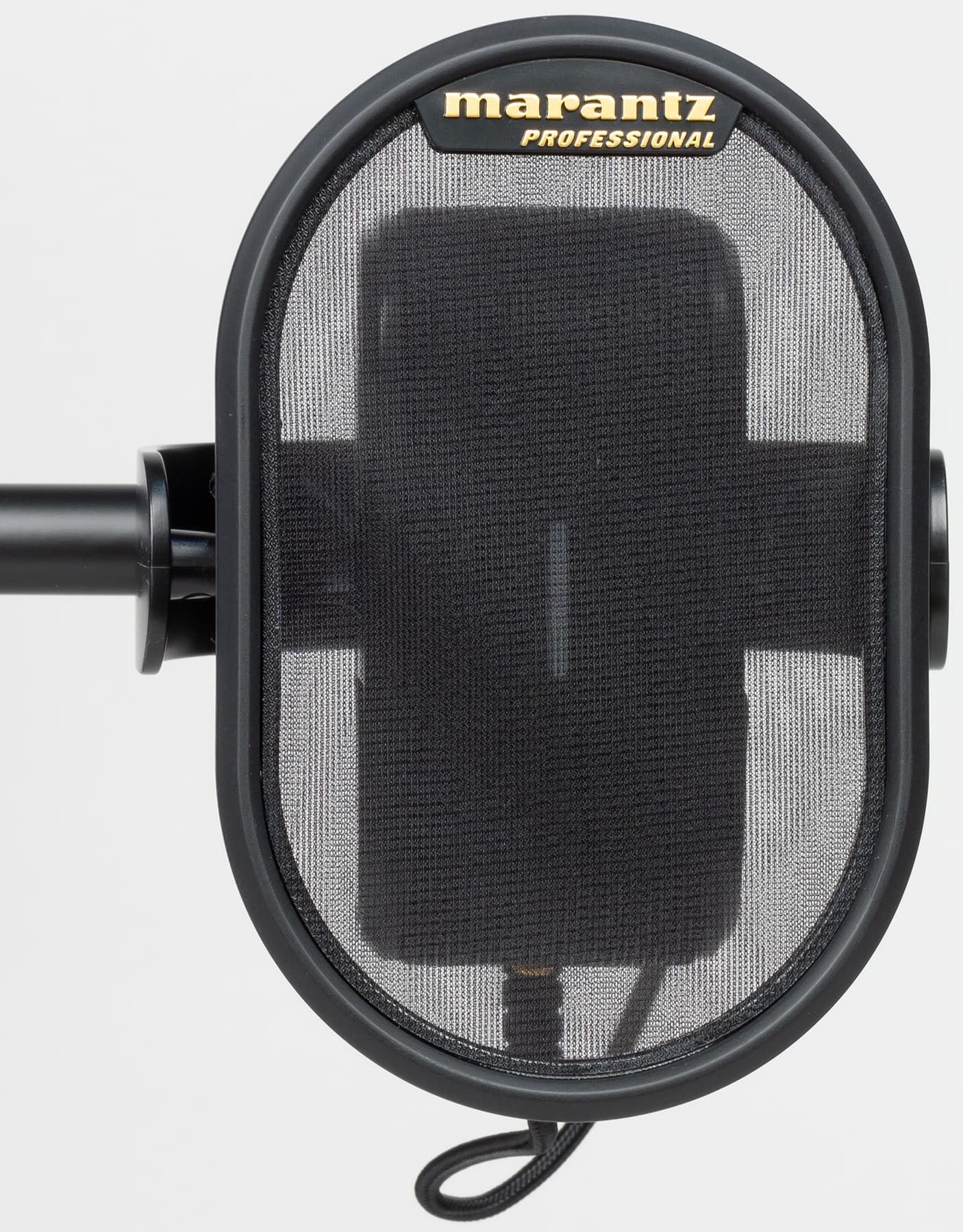 На рамке закреплен пластиковый «паук», совмещенный с креплением для поп-фильтра. Микрофон зафиксирован на пауке с помощью амортизирующих резинок. Паук способен поворачиваться на 90 градусов вниз и на 100-110 градусов вверх относительно горизонтальной оси.