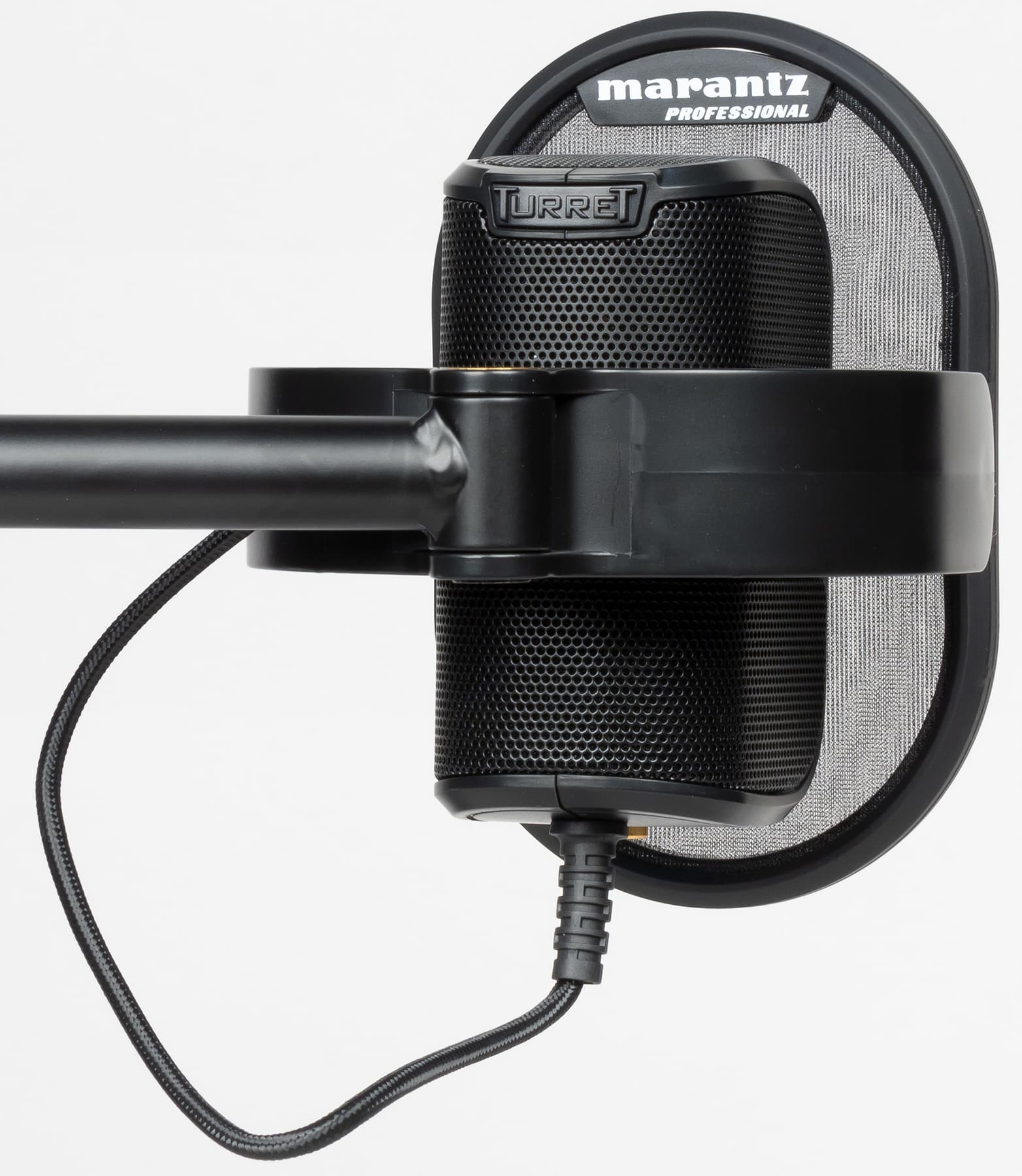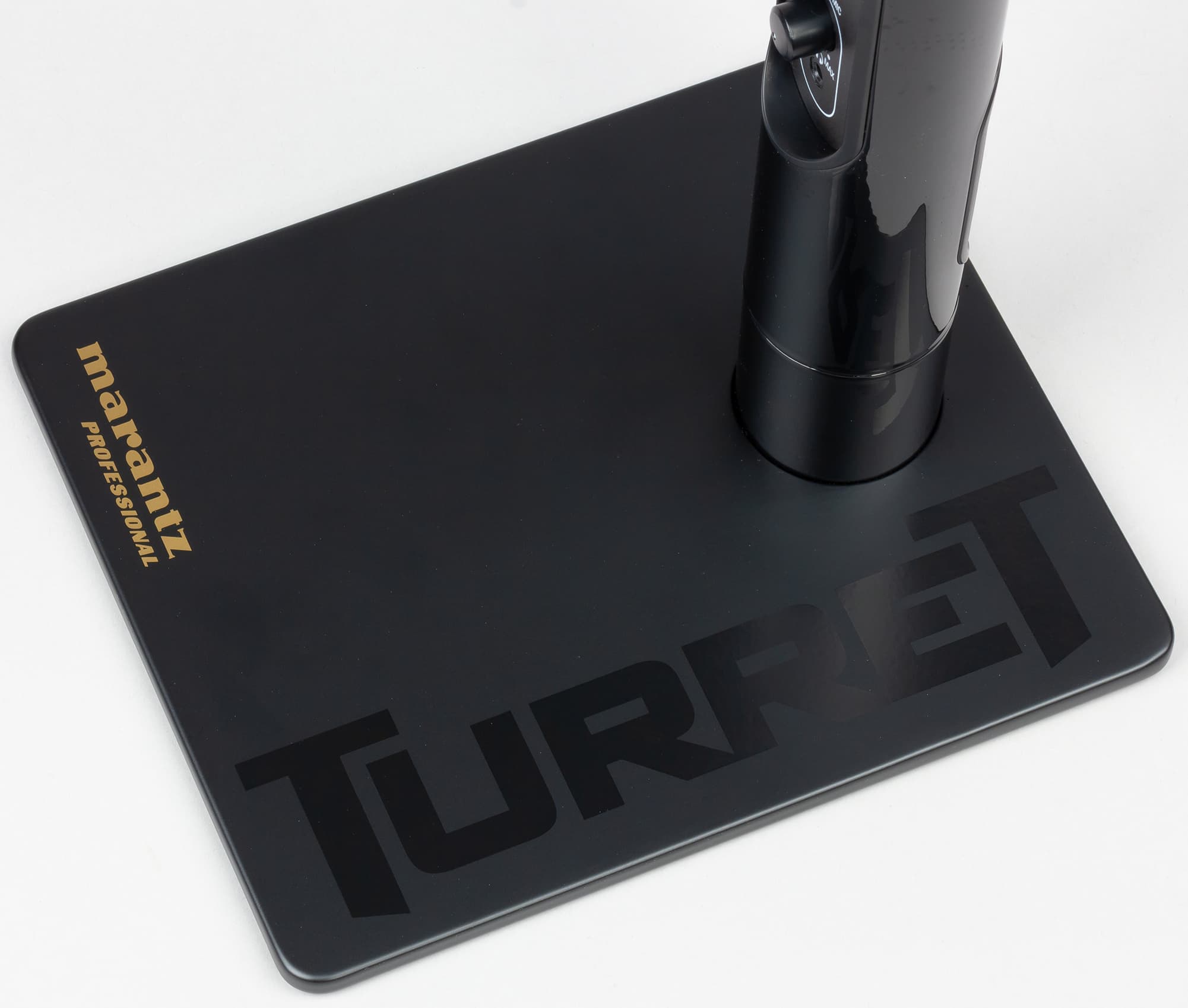 Marantz Professional Turret выглядит очень солидно: количество пластиковых элементов минимально, люфты и посторонние призвуки отсутствуют, элементы конструкции перемещаются плавно. Вес основания обеспечивает хорошую устойчивость системы даже при максимально разложенной штанге микрофона. Диапазон механических регулировок позволяет разместить систему практически в любом месте на столе: длины штанги микрофона и угла камеры хватит для того, чтобы пользователя было хорошо видно и слышно в любом месте. Внутренняя прокладка кабелей и минимальное количество проводов, необходимых для подключения системы к ПК и питанию, позволяет сделать пространство на столе более организованным. С точки зрения внешнего вида и механики, Marantz Professional Turret — чрезвычайно приятное и качественное устройство.