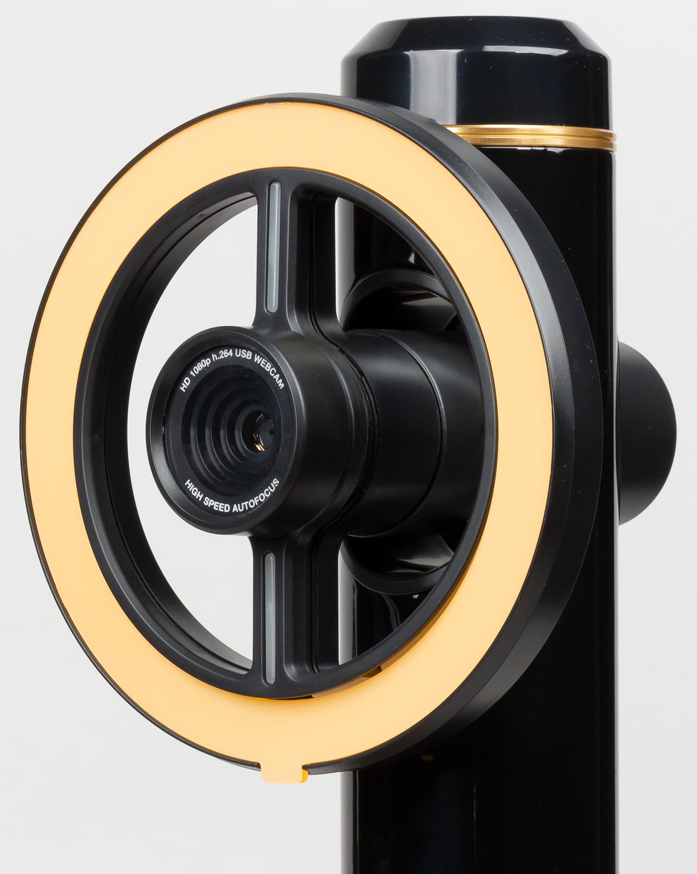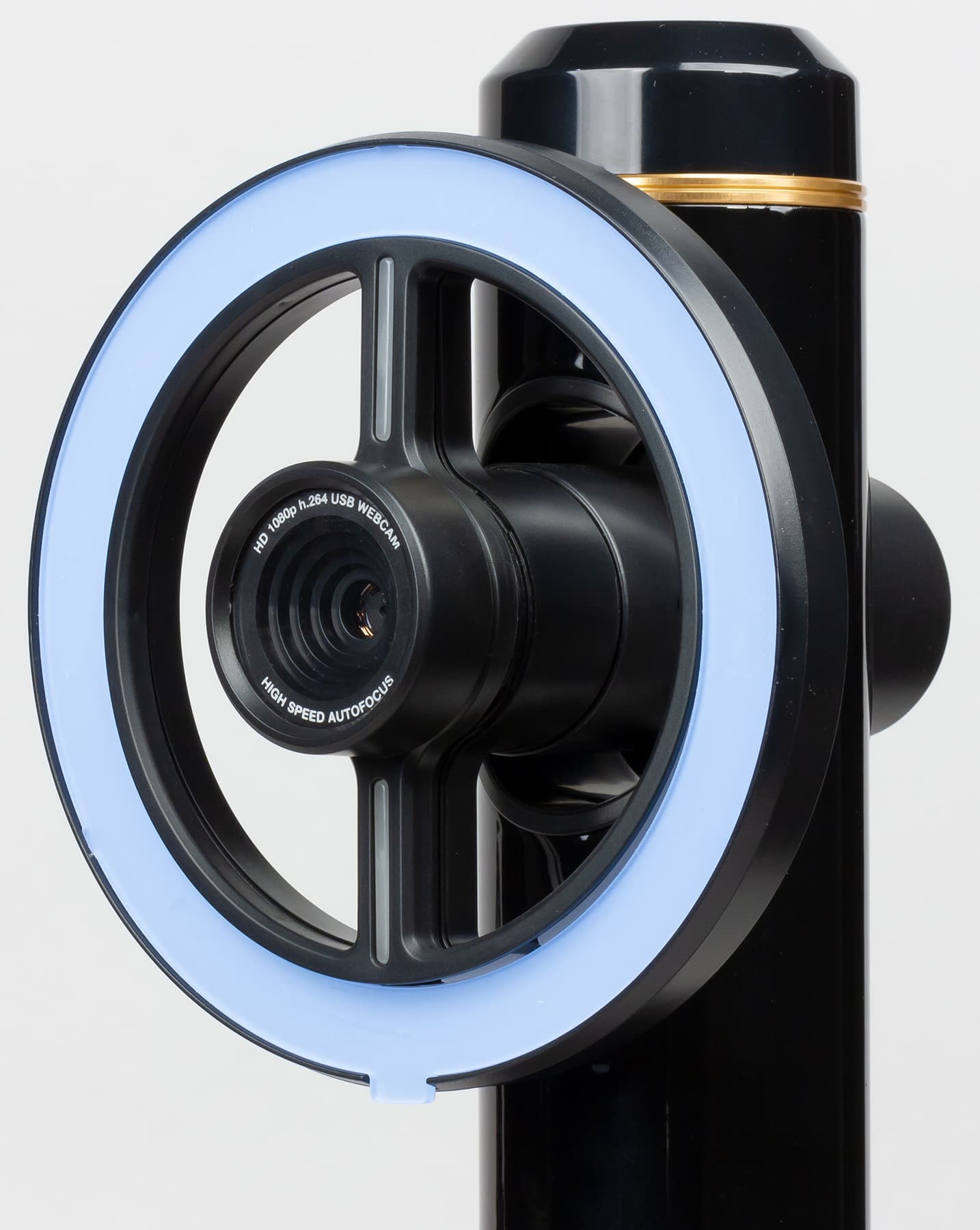 В верхней части штанги находится модуль камеры с опоясывающим его светодиодным кольцом для подсветки. Секция плавно и без усилий поворачивается на 340-350 градусов, модуль камеры наклоняется вверх и вниз, обеспечивая суммарный угол покрытия около 25 градусов по вертикали.