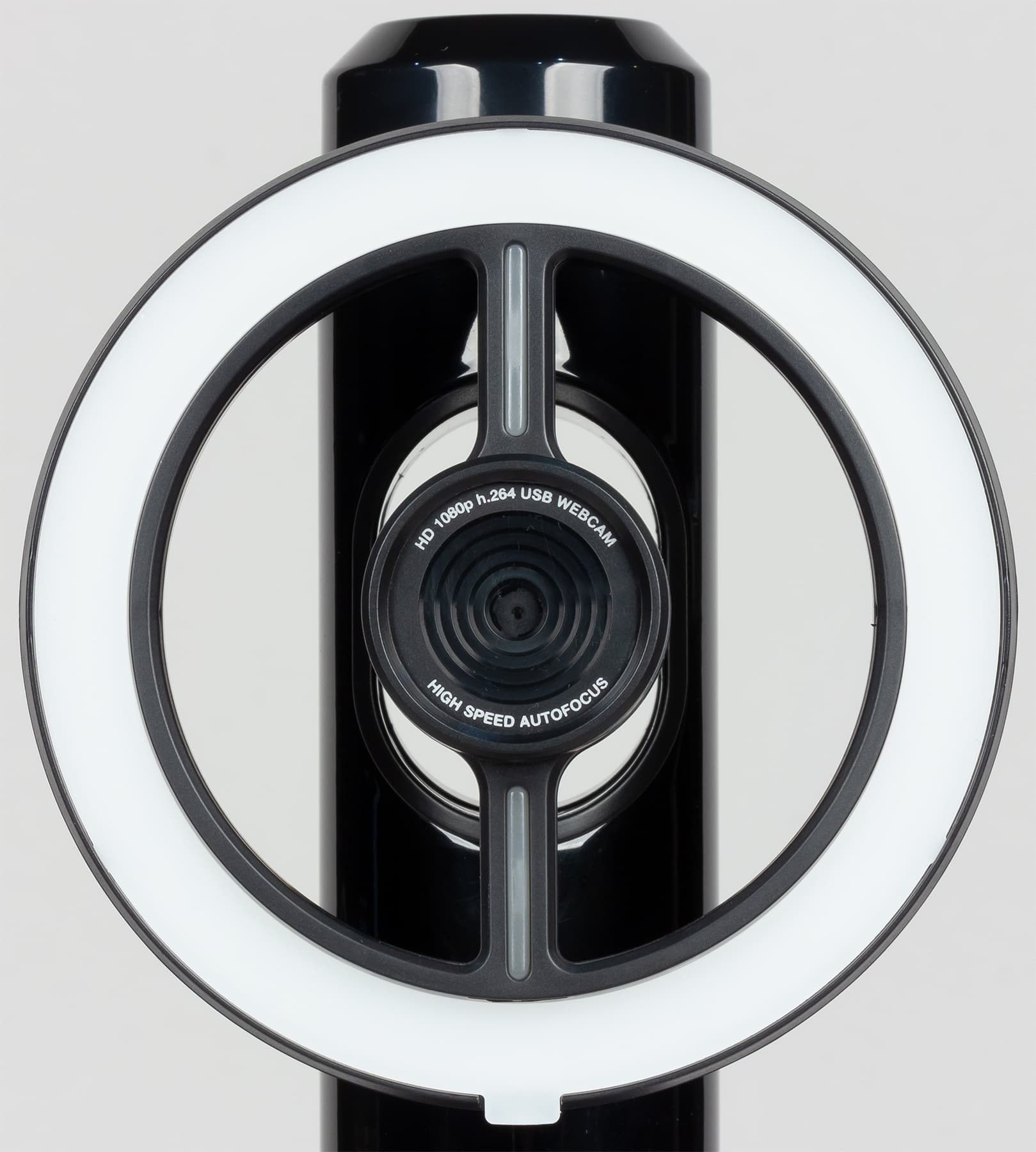 Вокруг модуля камеры расположен кольцевой светодиодный модуль постоянного света. На фронтальную поверхность крепятся рассеиватели, также обеспечивающие подстройку цветовой температуры света.