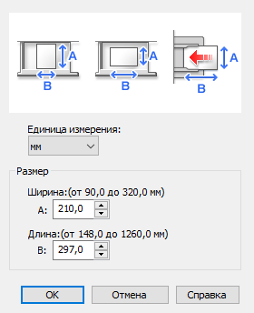 Напомним: при использовании обходного лотка диапазон размеров используемых носителей может быть сильно расширен — до 320 мм по ширине и до 1260 мм по длине.