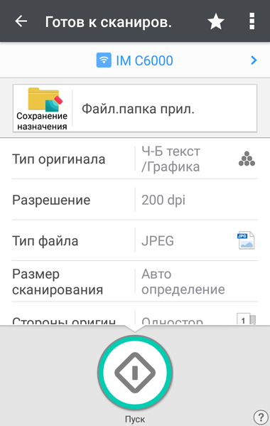 | Режим | Установки (в скобках для TWAIN) | USB-флешка | LAN (1 Гбит/с) | |||